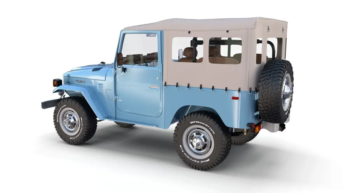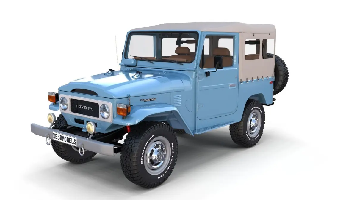 A very accurate model of the Toyota Land Cruiser FJ-40, with a HIGHLY DETAILED INTERIOR AND CHASSIS, WITH ENGINE, SUSPENSION AND BRAKES MODELED.