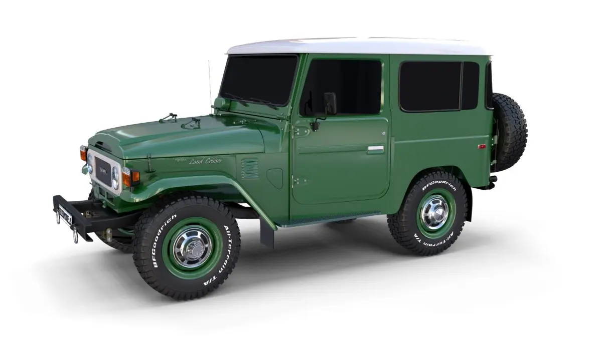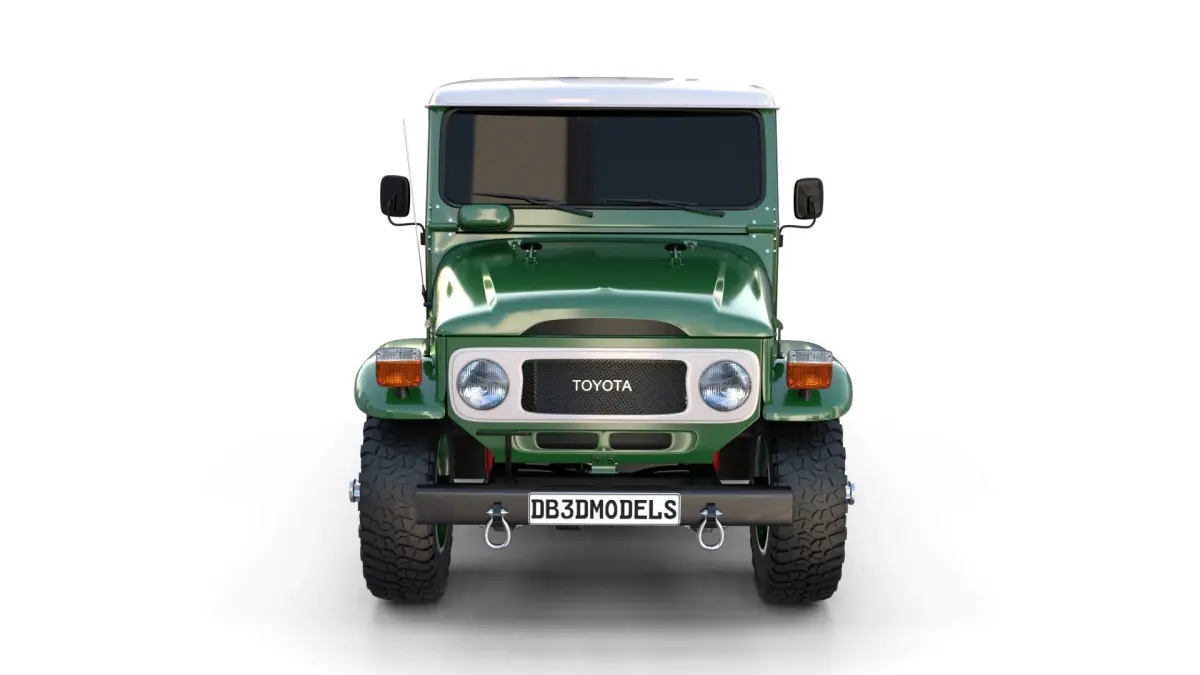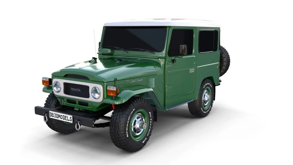 Toyota Land Cruiser Fj-40 with full chassis (motor setup, transmission, brakes, linkages, suspension, steering) 3d model rendered with Cycles in Blender, as per seen on attached images.