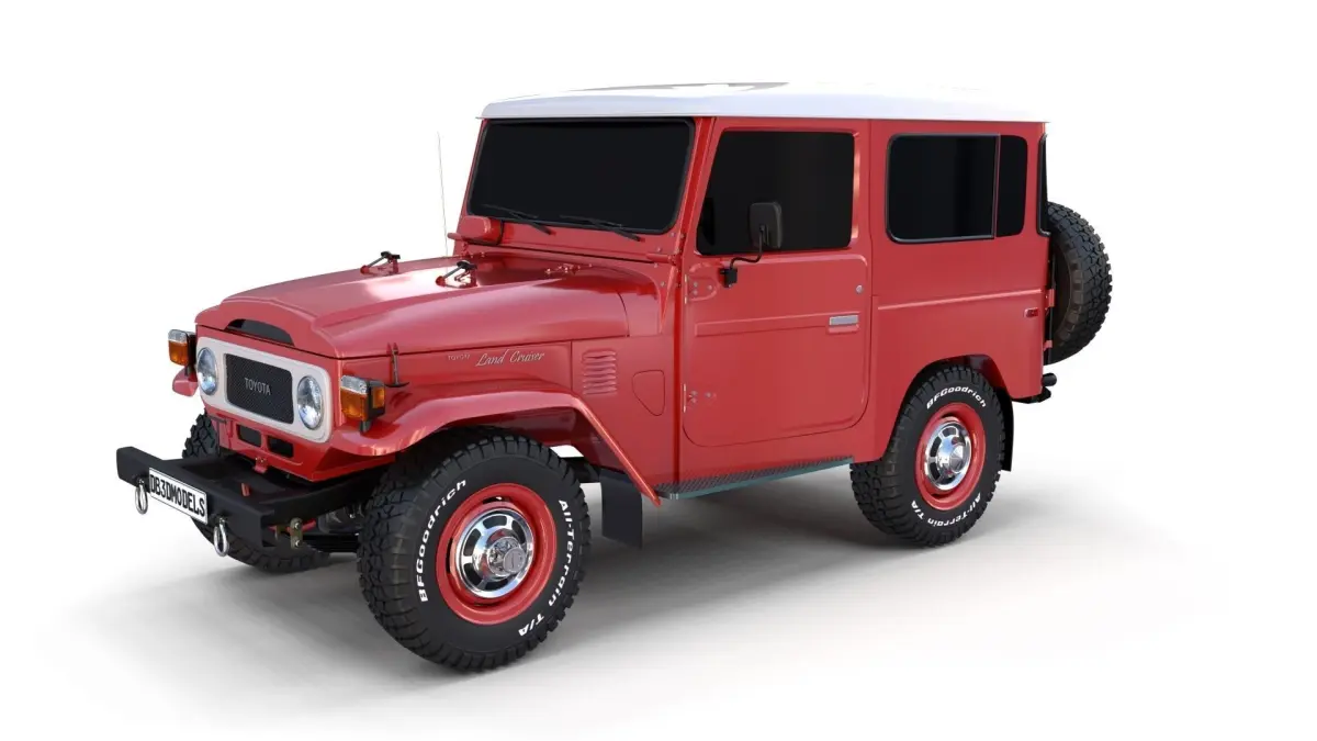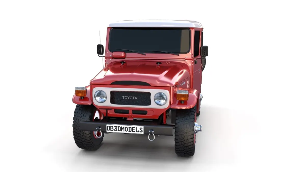 Toyota Land Cruiser Fj-40 with full chassis (motor setup, transmission, brakes, linkages, suspension, steering) 3d model rendered with Cycles in Blender, as per seen on attached images.