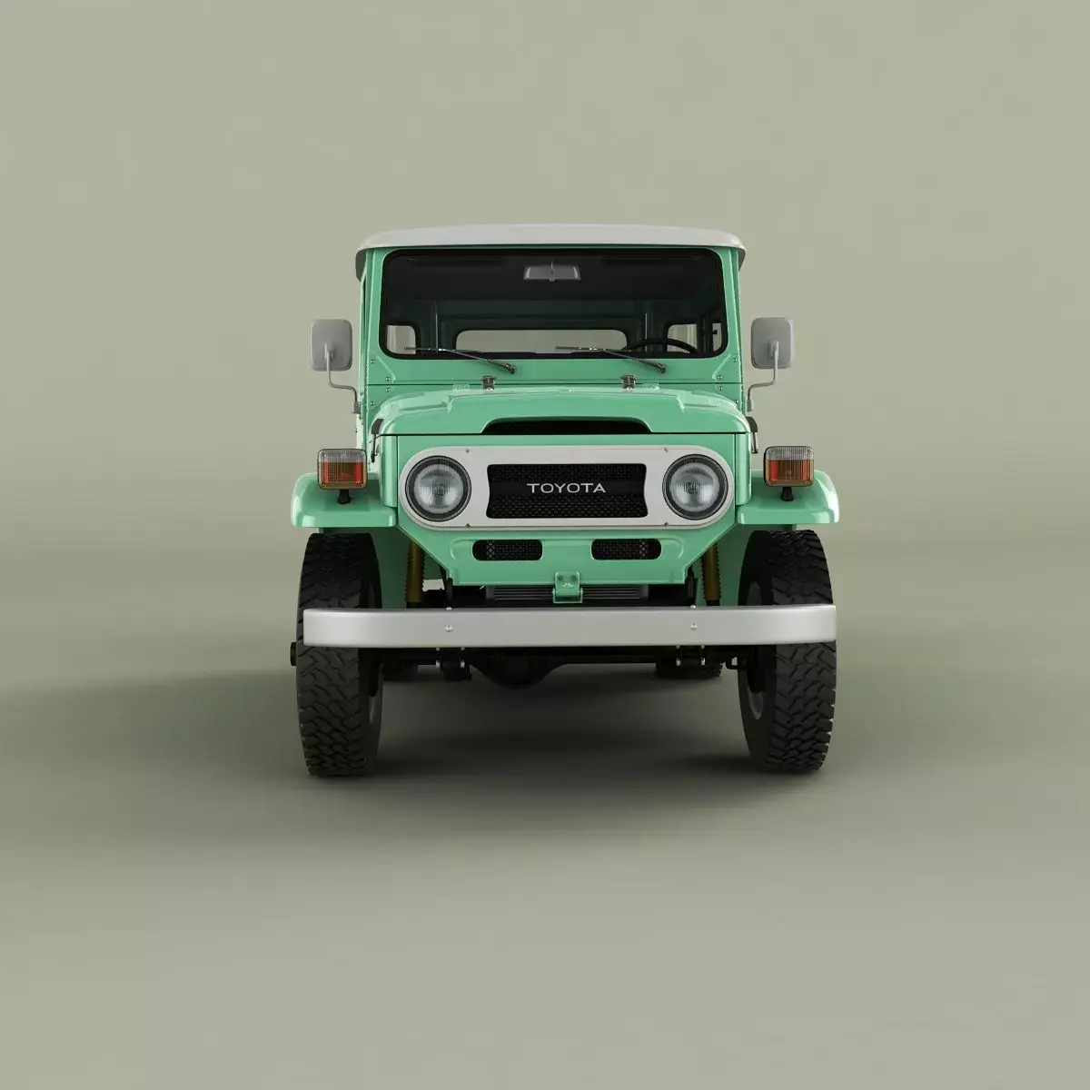 High detailed, correctly scaled model of 1961 Toyota Land Cruiser FJ40. Originally created with 3ds Max 8. Rendered with V-Ray, files with standard materials are included. Unit system is set to metric units. Model is built to real-world scale. Geometry is Editable Poly (quads/tris only). TurboSmooth is use separately to objects (79 of 173 named objects) with iterations 2 ( 1061660 polys, 645428 vert.) Each file was checked before upload. Materials and textures are included (5 textures - jpg 1024X1024).