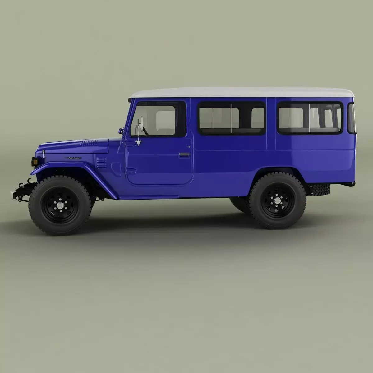 High detailed, correctly scaled model of 1981 Toyota Land Cruiser FJ47. Originally created with 3ds Max 8. Rendered with V-Ray, files with standard materials are included. Unit system is set to metric units. Model is built to real-world scale. Geometry is Editable Poly (quads/tris only). TurboSmooth is use separately to objects (81 of 185 named objects) with iterations 2 ( 1113997 polys, 666634 vert.) Each file was checked before upload. Materials and textures are included (5 textures - jpg 1024X1024).