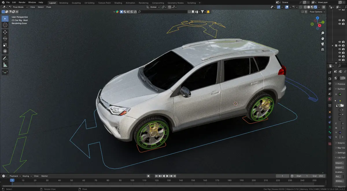 This is a model of the year 2016 Toyota Rav4 3d model made in Blender. The model is in the blenderfile format and ideal for animations and rendering. The model is already rigged and scaled to match the actual real-word car model to facilitate easy animation. The file can be opened in Blender versions 4.0 or higher. Only the exterior of the car is modeled.