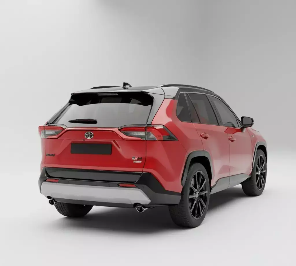 The sharp, angular headlights with integrated LED daytime running lights contribute to its modern and assertive look. Below the grille, the robust black bumper incorporates stylish air intakes and a silver-toned skid plate element, emphasizing its adventurous and rugged character. The precision of the design details, from the crisp lines to the subtle reflections on the bodywork, highlights the vehicle's premium quality. The studio-like lighting, set against a pristine white background, ensures that every curve and contour of the RAV4 GR Sport is showcased with exceptional clarity, making it a compelling image for automotive enthusiasts and potential buyers alike.