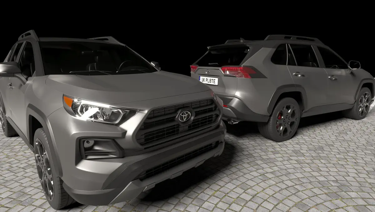Realistic 3D model of the Toyota RAV4 TRD Off-Road (2023) — created using official manufacturer references. Suitable for visualizations and promotional renders. Signature TRD features are accurately recreated, including the aggressive front bumper, black wheels, roof rails, increased ground clearance, and off-road tires.
