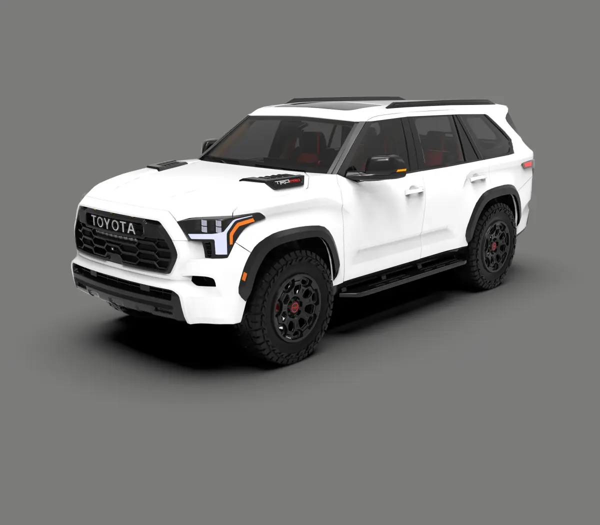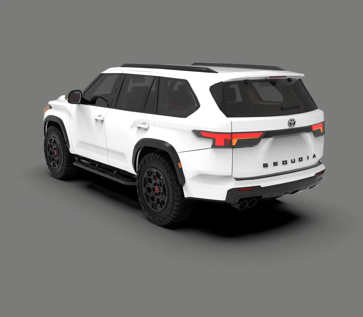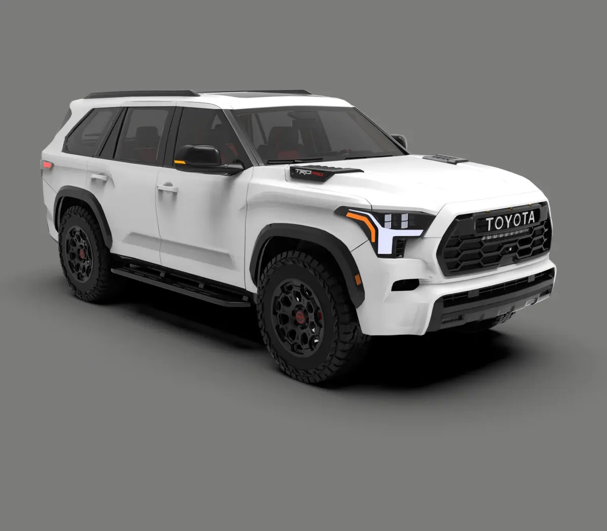 High-quality 3D model of the Toyota Sequoia TRD Pro (2023-2024), a full-size SUV built for off-road performance and luxury. This model accurately captures the rugged yet modern design, featuring the aggressive front grille, TRD off-road suspension, skid plates, and all-terrain tires. Optimized for high-quality renders, animations, VR/AR applications, and automotive visualizations, this model is perfect for projects requiring a realistic and detailed representation of Toyota's premium off-road SUV.