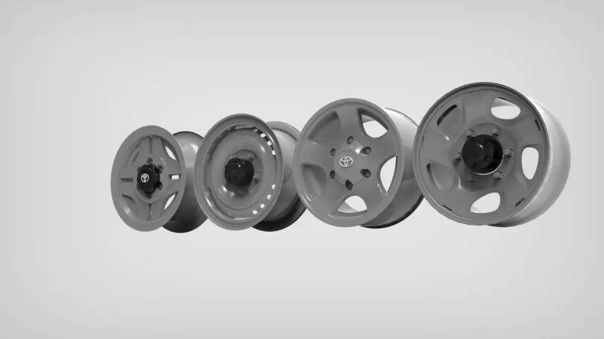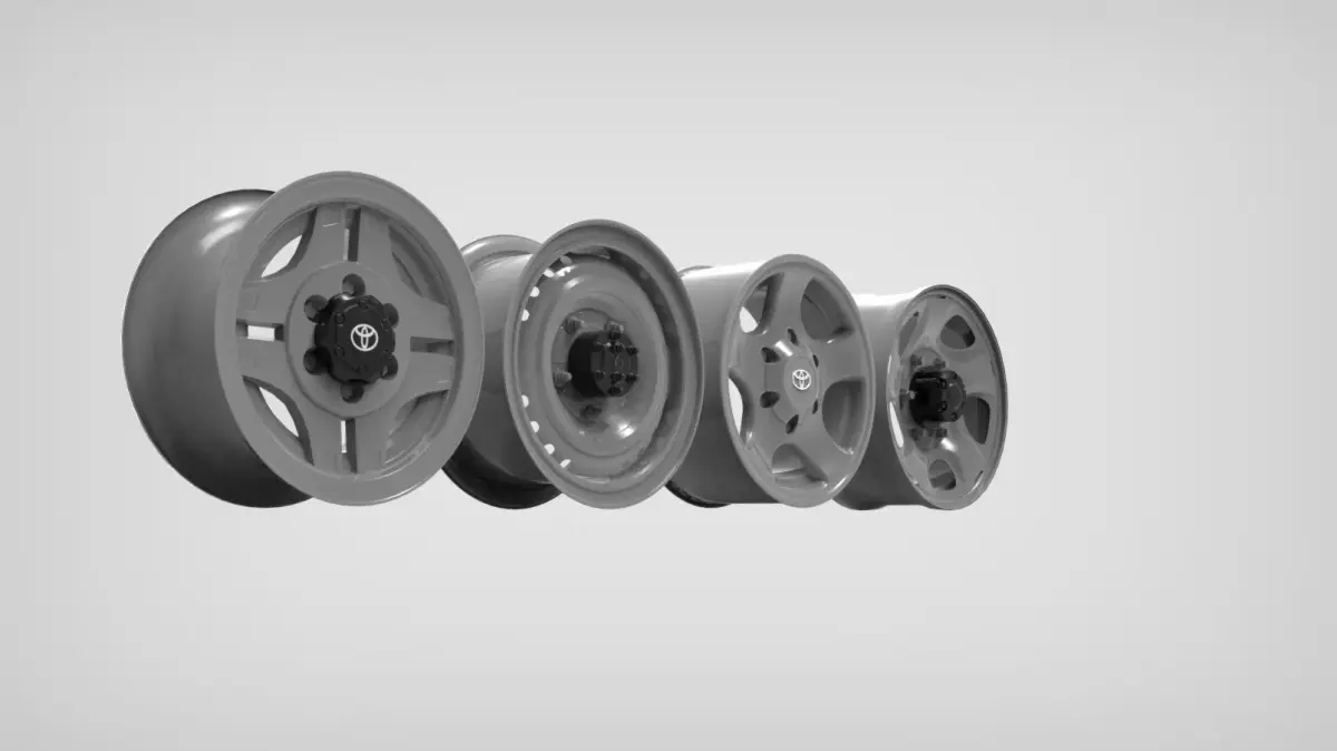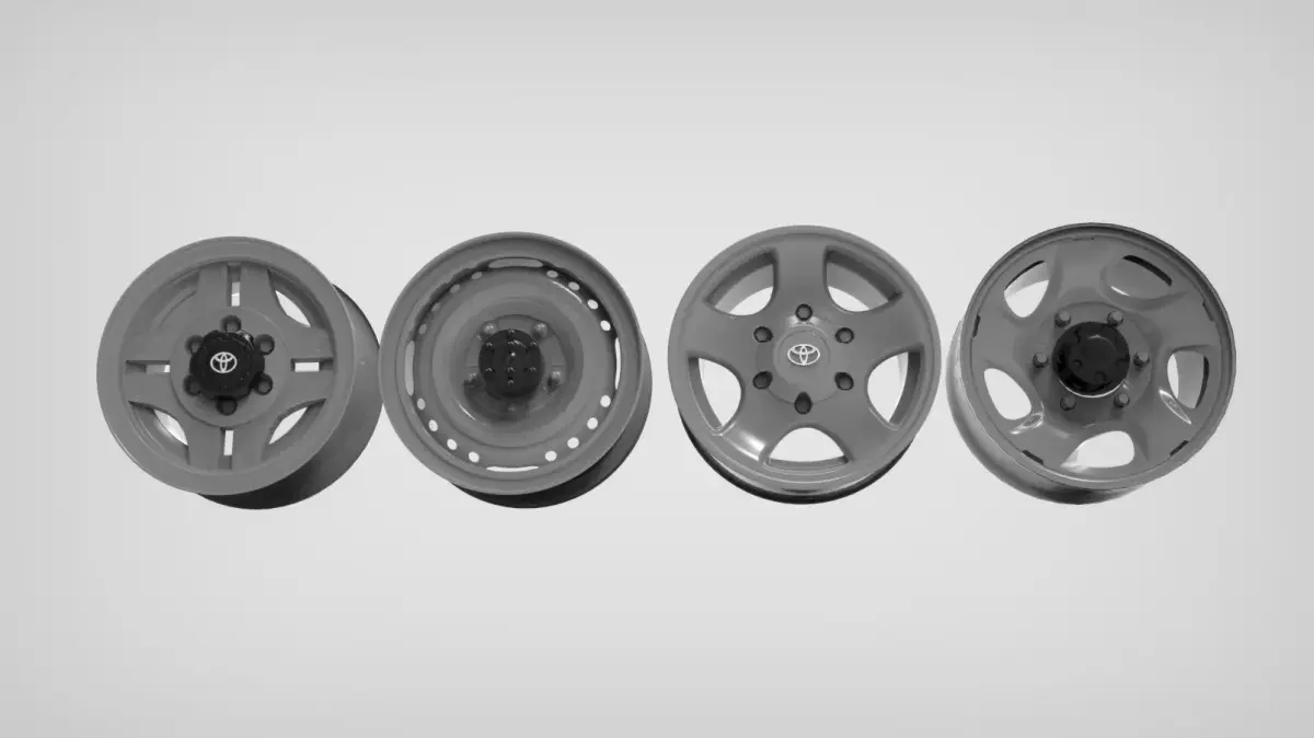 Toyota Iron Wheel Set - These meticulously crafted, custom-made wheels replicate every detail of the original! No detail was overlooked. What are you waiting for? Buy this set that includes the most important part of your vehicle: its original wheels! This high-quality piece is perfect for any setting, whether it's gaming, simulation, or animation.