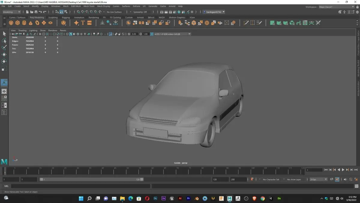 Toyota Starlet 1998 for 3D Print Model and High poly Model.
