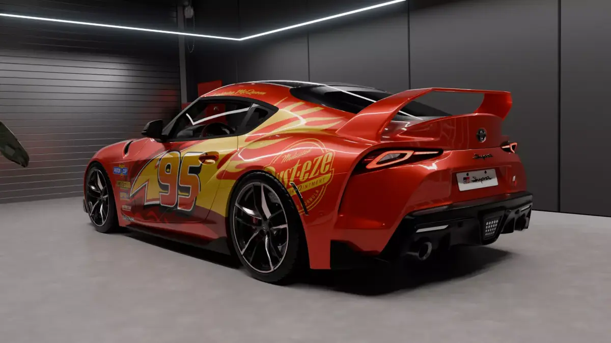 This Toyota Supra Mk5, designed with McQueen paint, can be freely used in animated movies, cartoons, and commercial videos. The car is fully rigged, with a detailed and textured interior. If you need the model in another format, feel free to contact me.