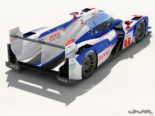 Low poly model of Toyota TS030 LMP1 LeMans 24 hour race 2012. Driver included.