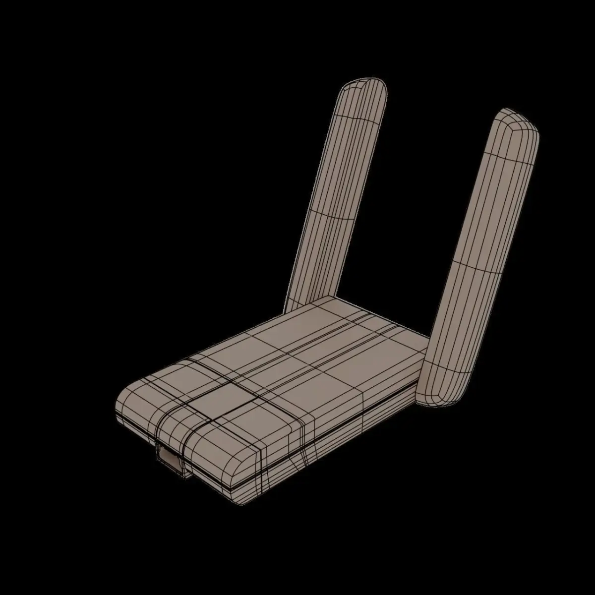 Inspired from the IRL adapter, I tried to keep it on a 1:1 scale. The model contains a very basic mini USB connector and cable and the antennas are rigged so it can be animated as shown on the YT video.