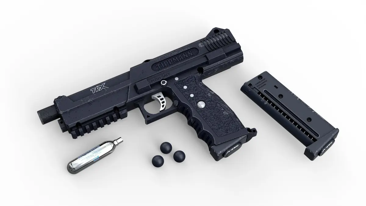 Tpx Paintball marker modeled in sketchup, UV mapped in blender, textured in substance painter.