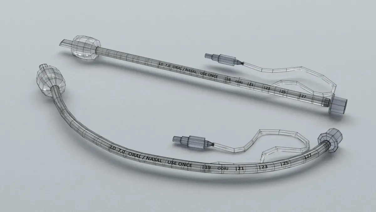 A catheter for medical intubation.As a standard instrument for ventilation you will find it in any surgery.