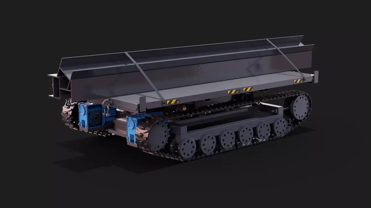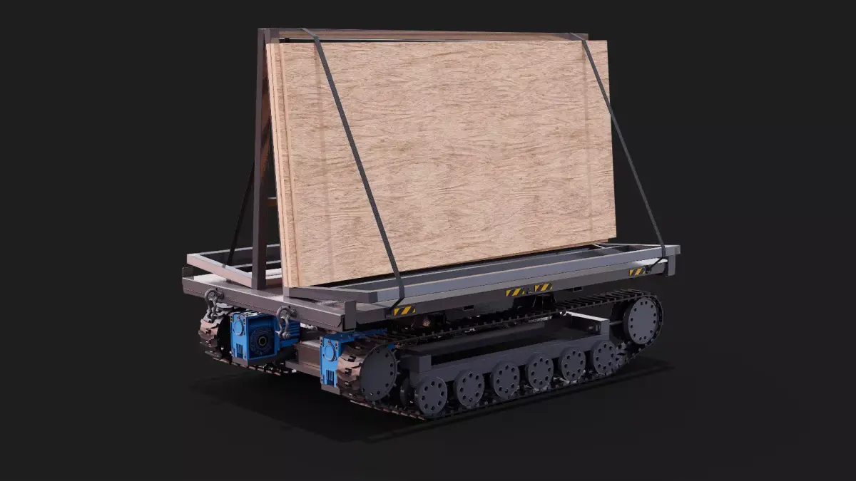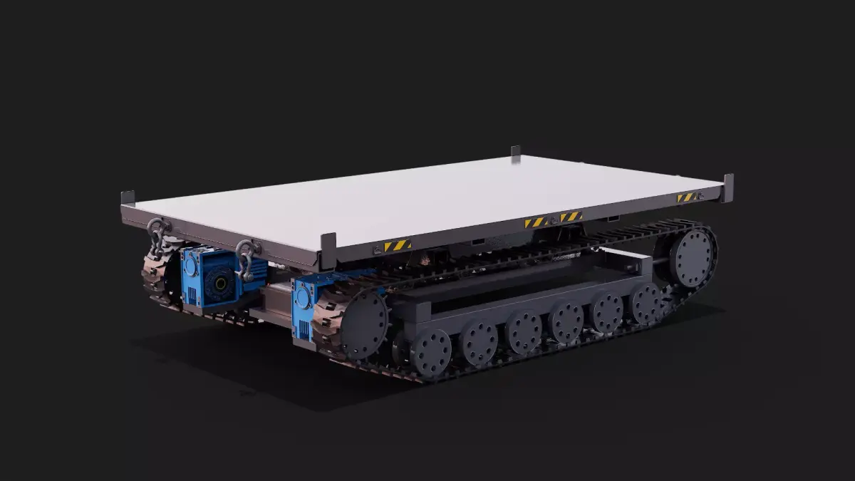 this is a realistic 3d model or prop of a tracked crawler load carrier robot. it is used as a means to carry heavy loads in the construction or building industry. It uses rubber tracks as opposed to wheels for increased mobility and being able to navigate terrain such as steps, uneven ground or other obstacles. These robots are unmanned remote operated, essentially a UGV.
