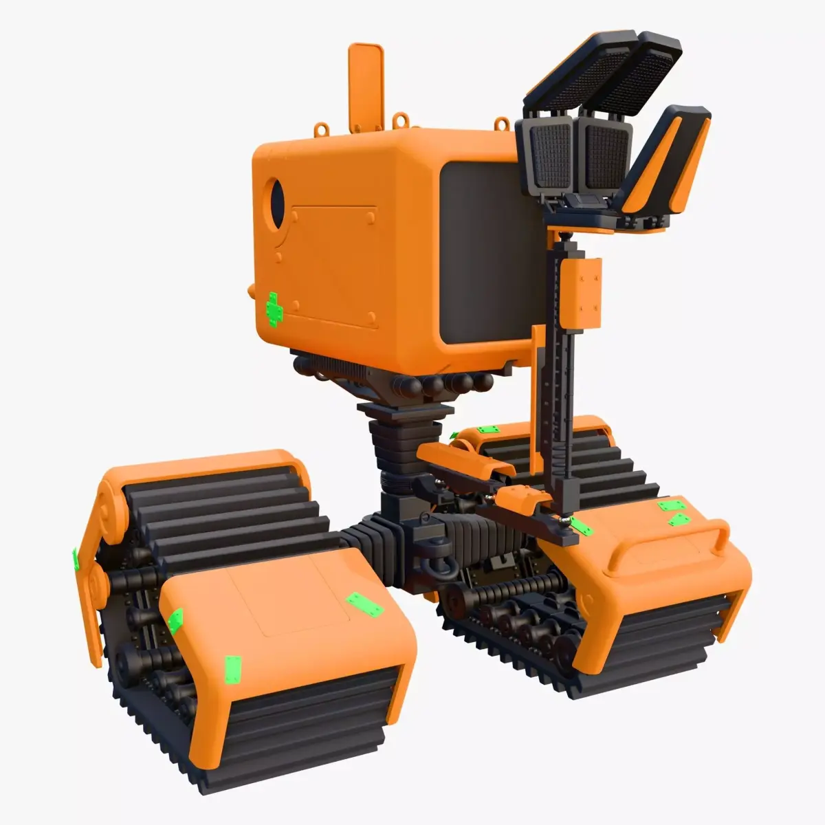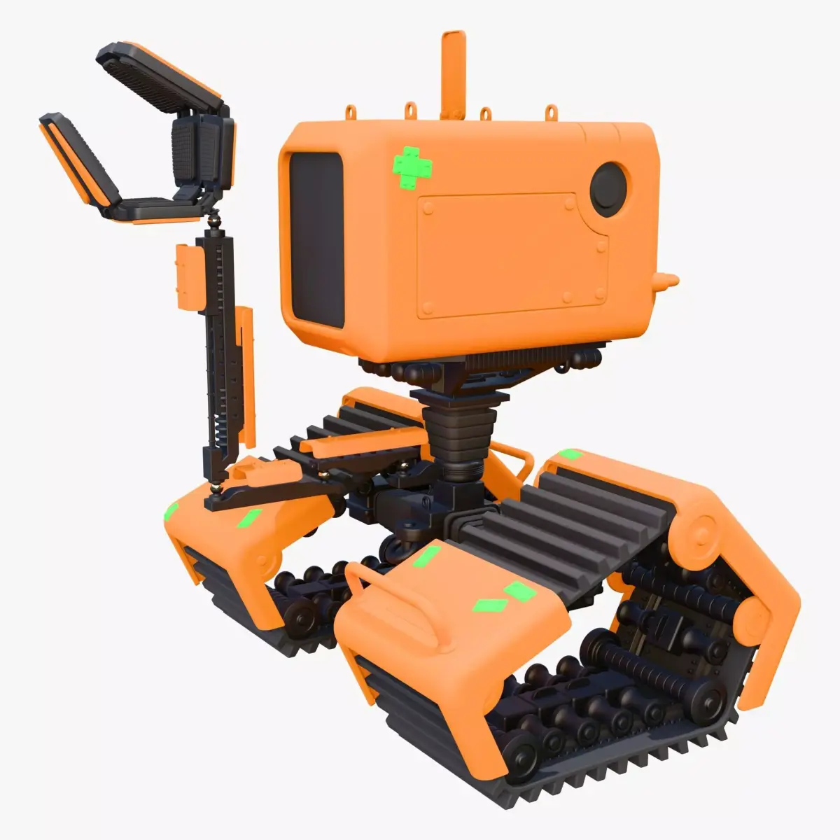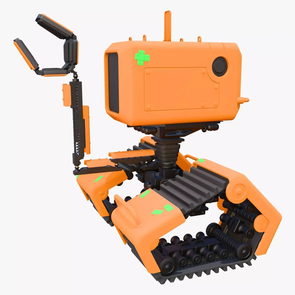 The 3D model 'Tracked Droid with Robotic Arm M1' is an unbranded design made for professional projects.