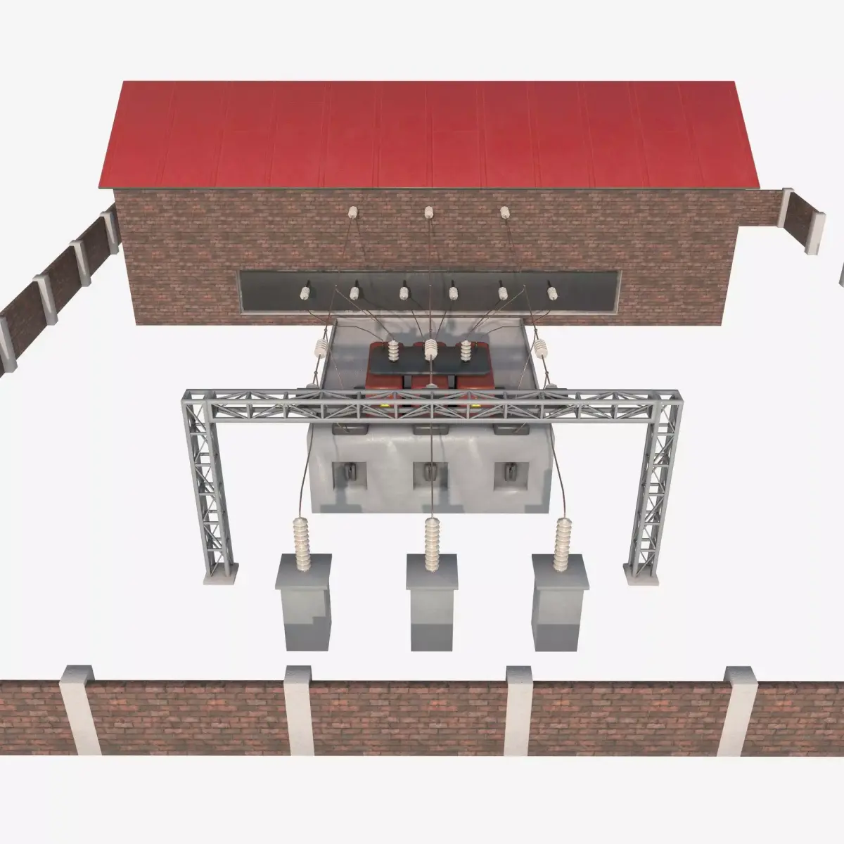 3d low poly model of traction substation. It can be used together with power plant sets, railways, etc.