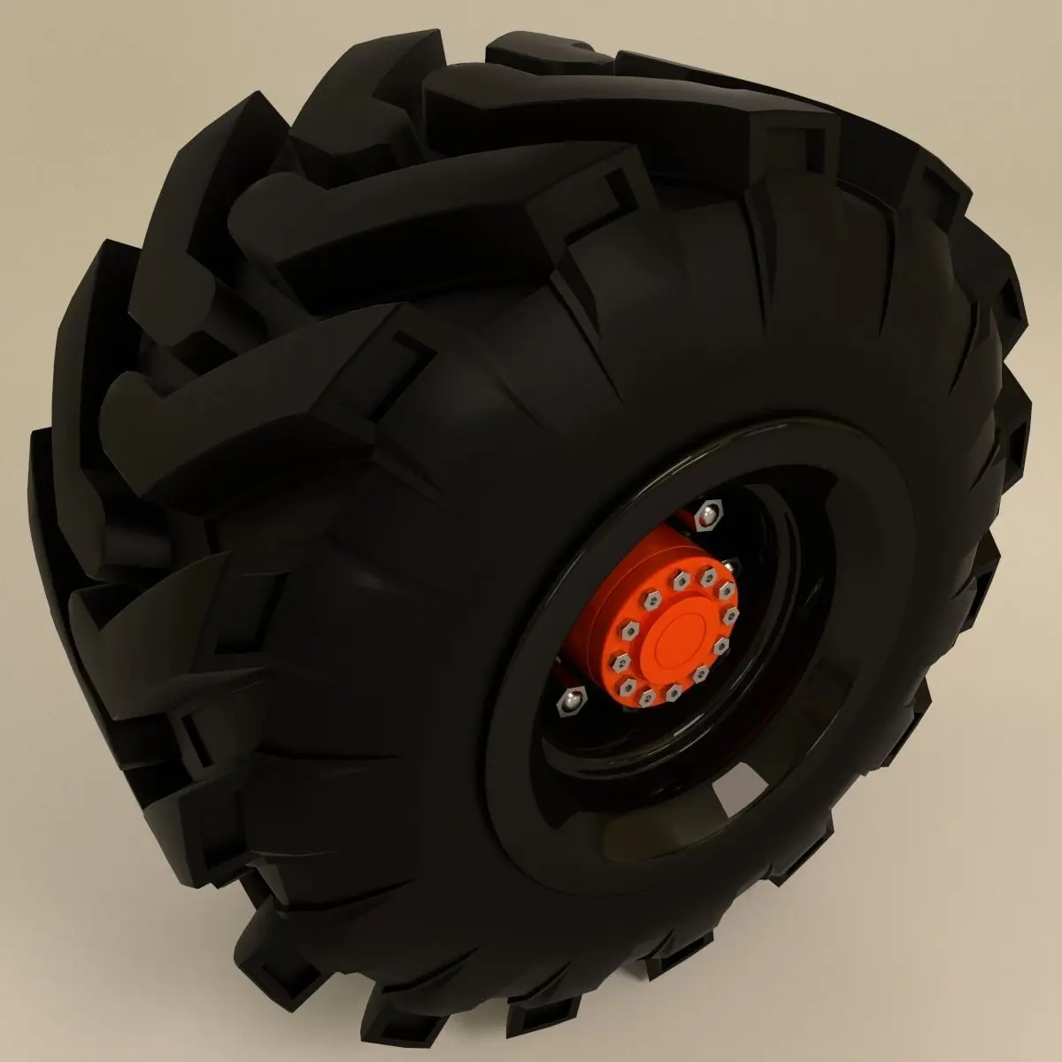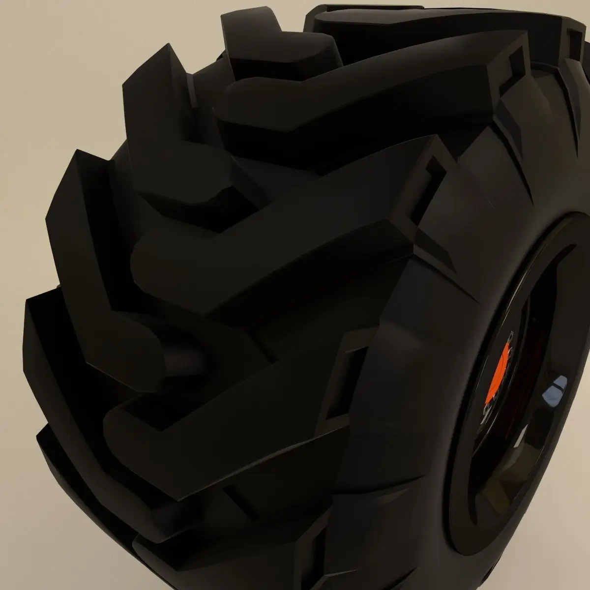 In essence this is a heavy duty offroad truck tire or a tractor tire. It is quite massive in size, having a 1,24 meter diameter and being 0,7 meters wide.