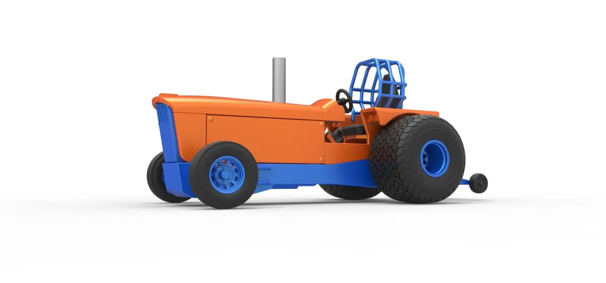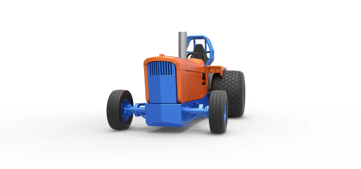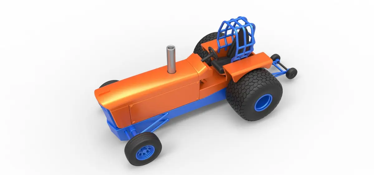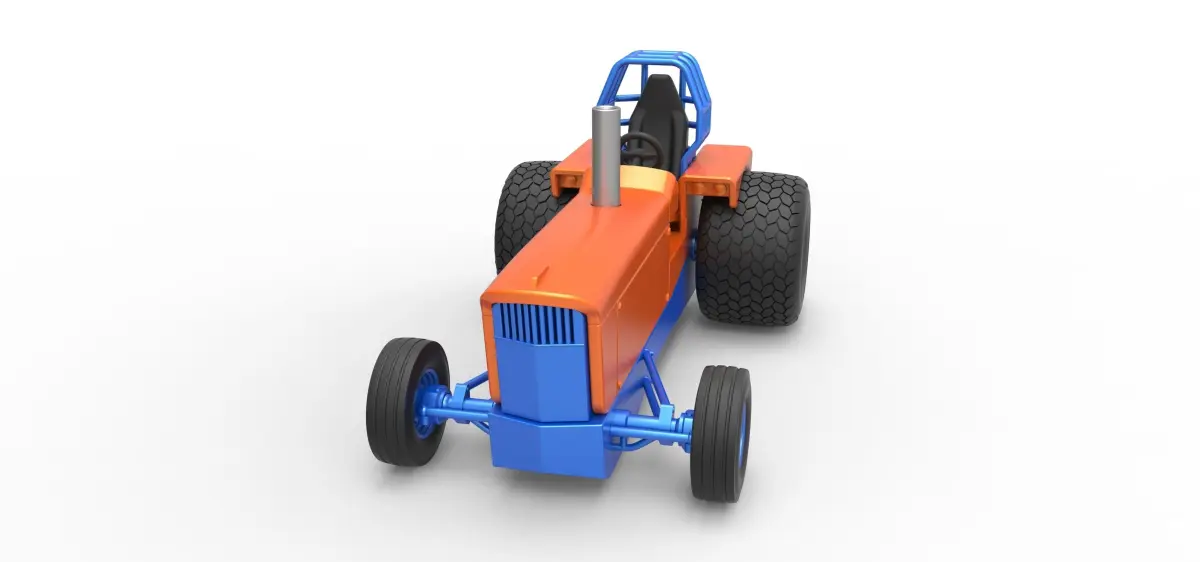 The model consists of parts: Air intake part, Body part 1-3, Engine, Exhaust part, Exhaust pipe, Front insert, Front rims, Front tires, Protection, Rear rims, Rear tires, Seat, Side plates, Steering wheel, Wheelie bar pin, Wheelie bar wheels, Wheelie bar.