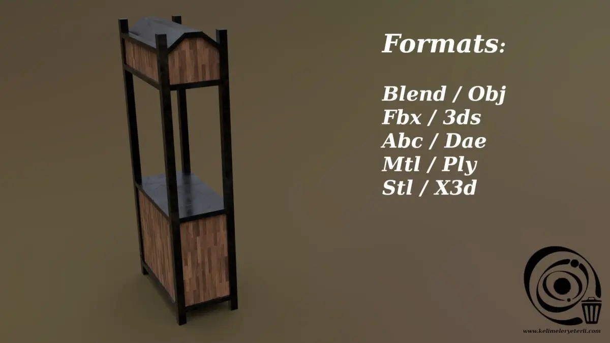 BLEND (Blender, filesize: 476 KB), OBJ (OBJ, filesize: 27.4 KB), FBX (Autodesk FBX, filesize: 19.9 KB), 3DS (3D Studio, filesize: 16.4 KB), ABC (Alembic, filesize: 19.6 KB), DAE (Collada, filesize: 45.4 KB), STL (Stereolithography, filesize: 20.8 KB), TEXTURES (Textures, filesize: 25.5 MB)