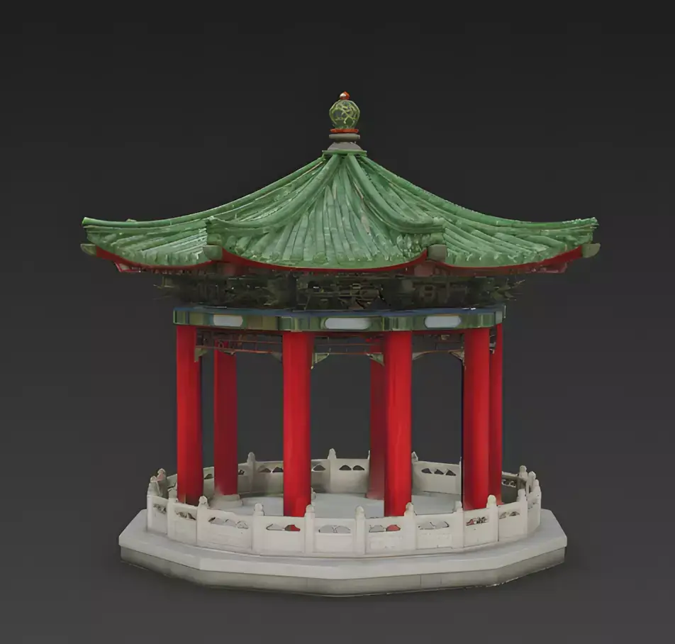The Overall Concept This asset is a classic six-sided gazebo, known as a Ting. It is a peaceful resting spot typically found in imperial gardens or scenic parks, designed for people to sit and enjoy the beauty of nature.