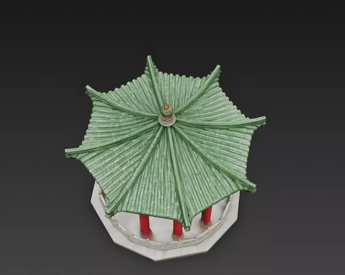 Files Included: FBX, GLB, OBJ, STL, ZIP (Textures). Quick Tip: The Green Roof Tiles should look like polished ceramic. Use a Clearcoat or high Gloss setting in your material editor so they reflect the sky, making the pavilion look brand new and well-maintained.