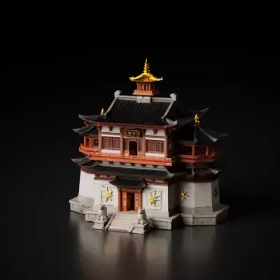Optimized for high-end production pipelines, the building is constructed with clean, quad-dominant geometry and features professionally unwrapped, non-overlapping UVs. The included 4K PBR texture set (Base Color, Normal, Roughness, Metallic, and Ambient Occlusion) ensures that the intricate wood grains and reflective gold elements react realistically to dynamic lighting in major engines like V-Ray, Arnold, and Blender's Cycles. This hero architectural asset provides premium visual storytelling and technical reliability for any cultural or fantasy project.