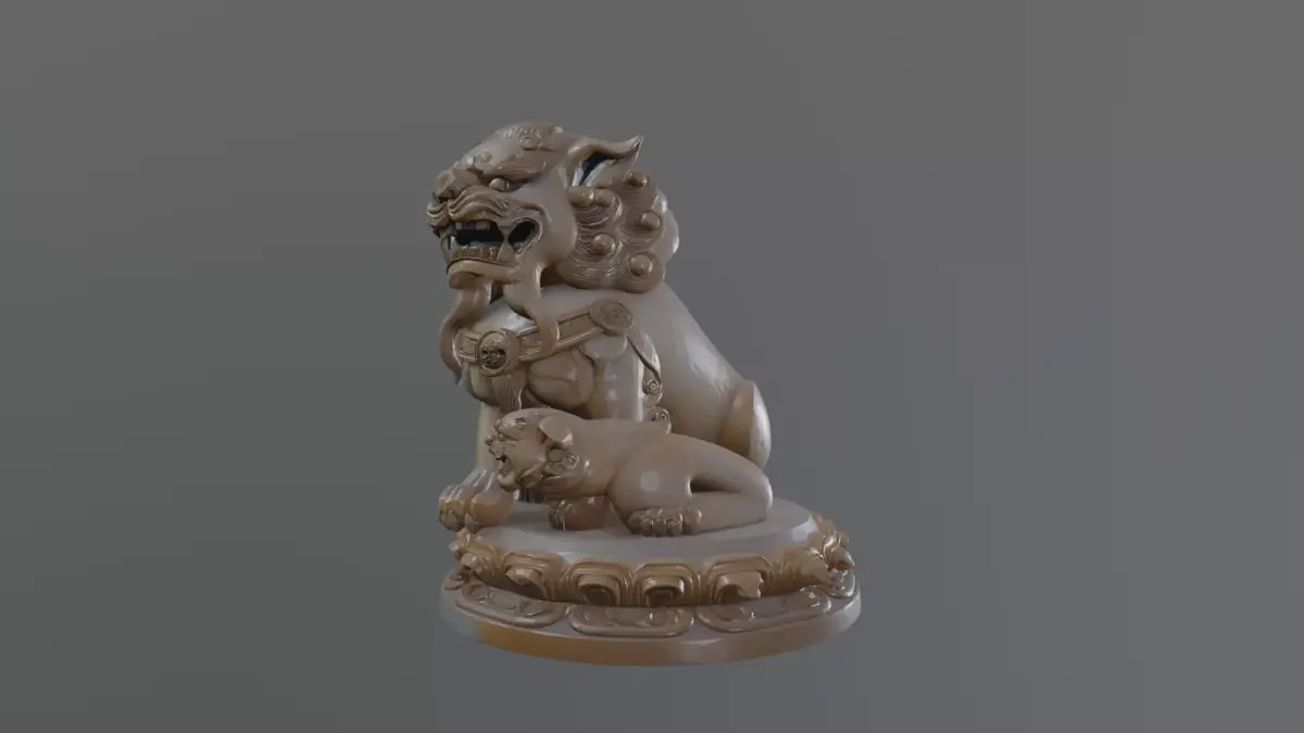 Set of 8 traditional Chinese decorative props featuring guardian lions, Buddha statue, ritual columns, ornamental masks, and architectural carvings. Designed for temples, shrines, historical scenes, and cultural environments. Low–mid detail, game-ready assets suitable for real-time use.