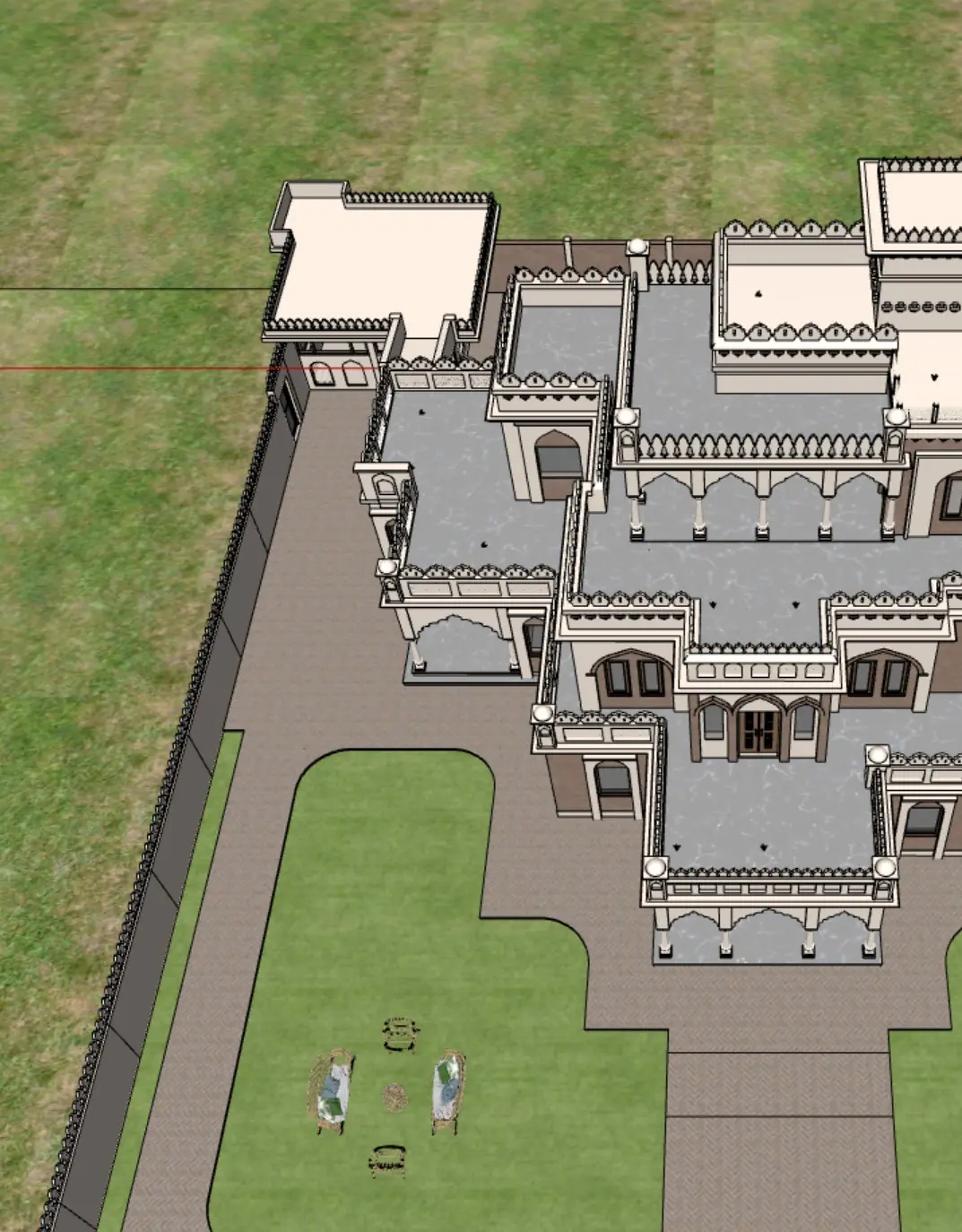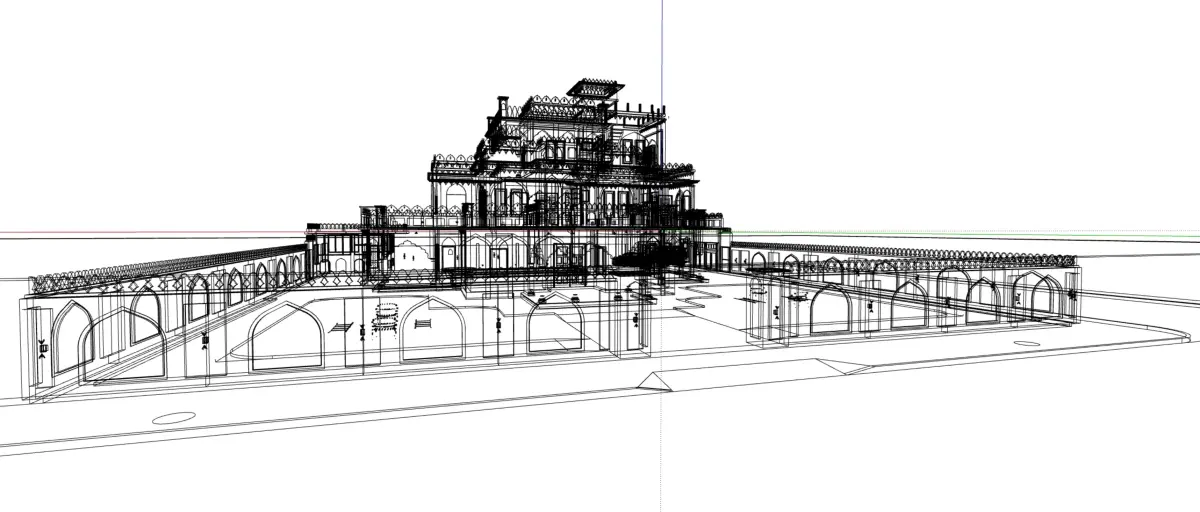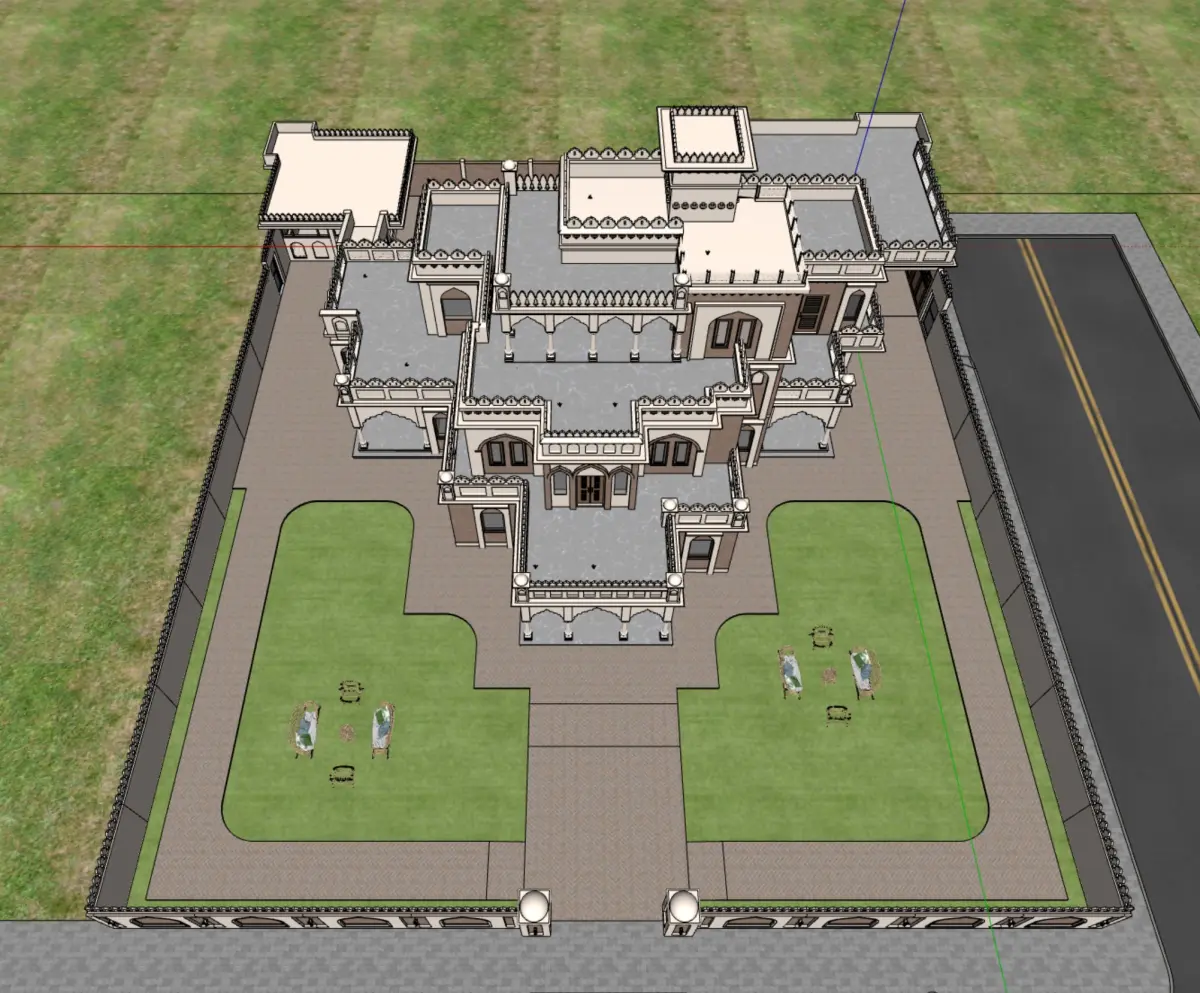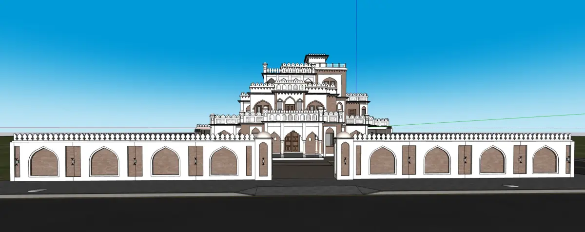 Step into the grandeur of traditional Indian architecture with this meticulously crafted 3D model of a Haveli. This model captures the essence of heritage design, featuring intricate carvings, ornate jharokhas (overhanging enclosed balcony), grand courtyards, and beautifully detailed arches.