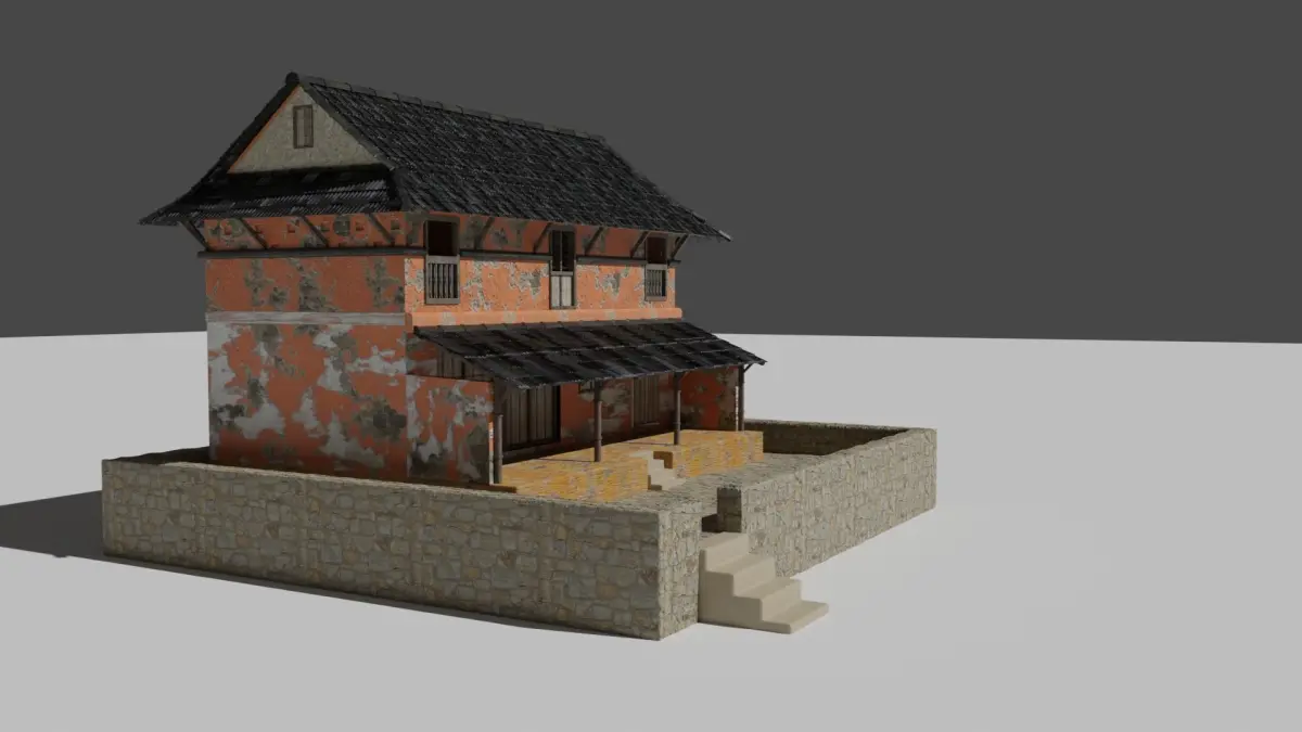 This is a Traditinal House in Nepal. which is calld as a Mud House (in Nepali LanguesPahade Ghar ) Model detailes :Objects : 60/61Vertices : 691273Edges : 1364484Faces : 676051Triangles : 1373254