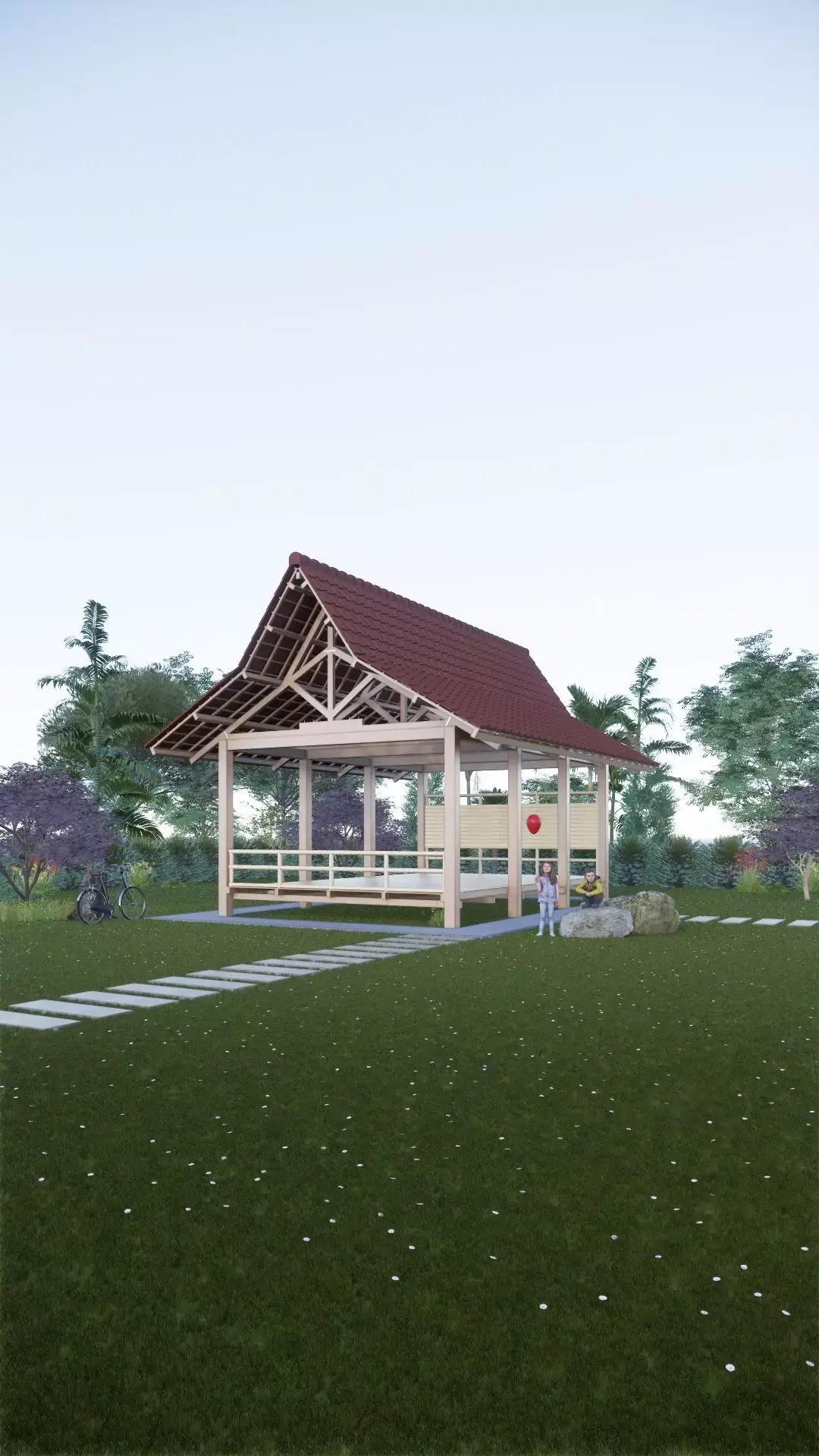 This is a traditional hut made of wood and bamboo. Its inspired by architecture traditional from West Java , Indonesia.