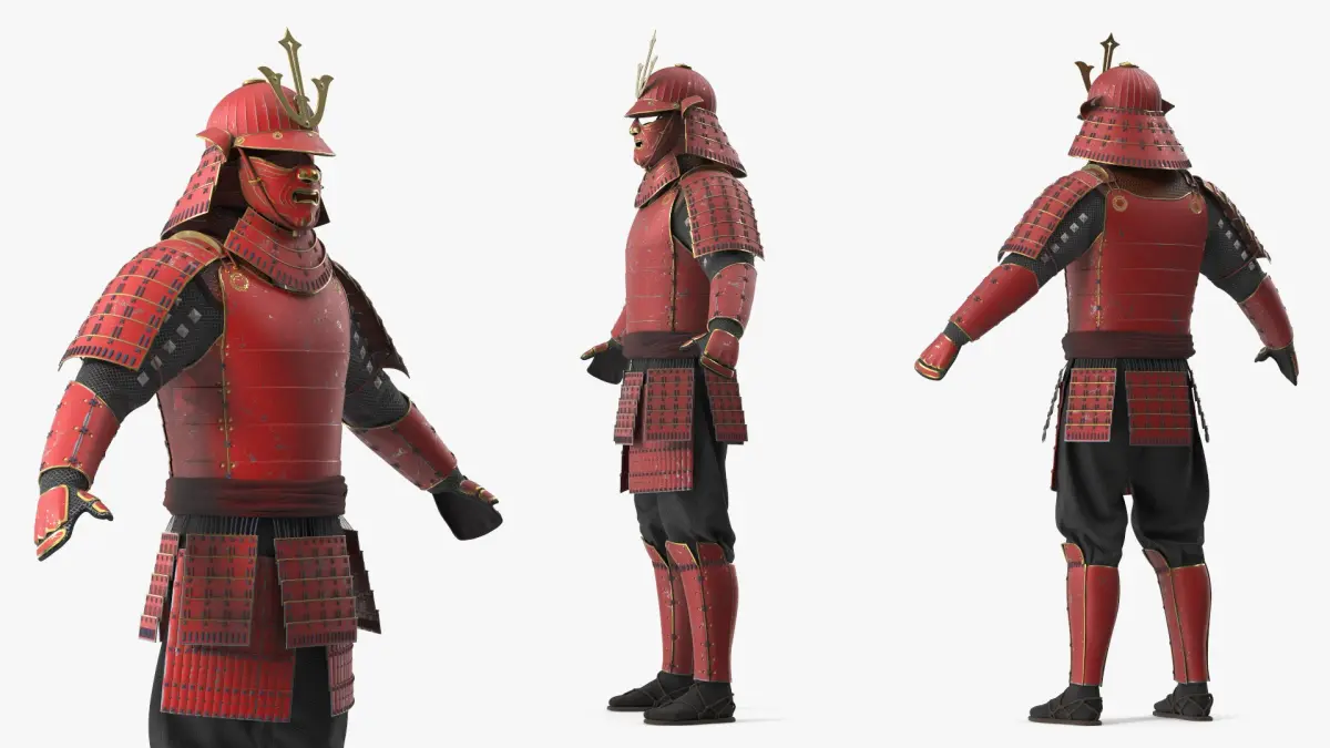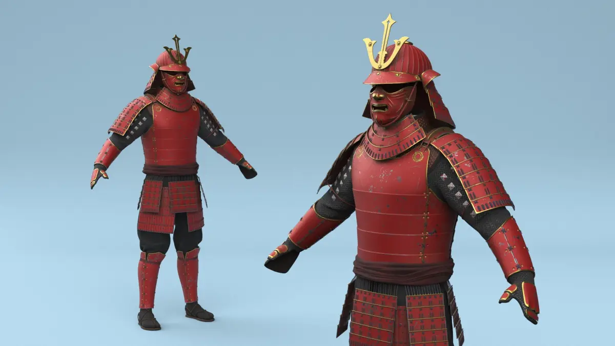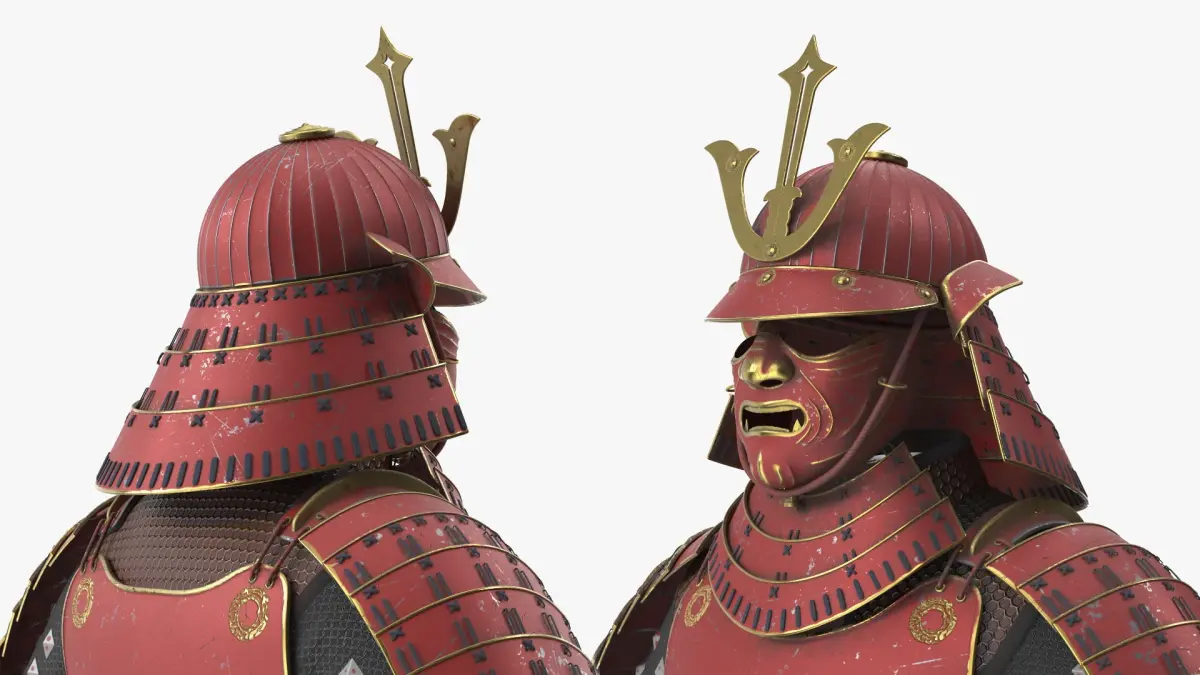 Traditional Japanese Yoroi Armor with Mask Red Old is a high quality, photo real 3d model that will enhance detail and realism to any of your rendering projects. The model has a fully textured, detailed design that allows for close-up renders, and was originally modeled in 3ds Max 2020 and rendered with V-Ray. Renders have no postprocessing!