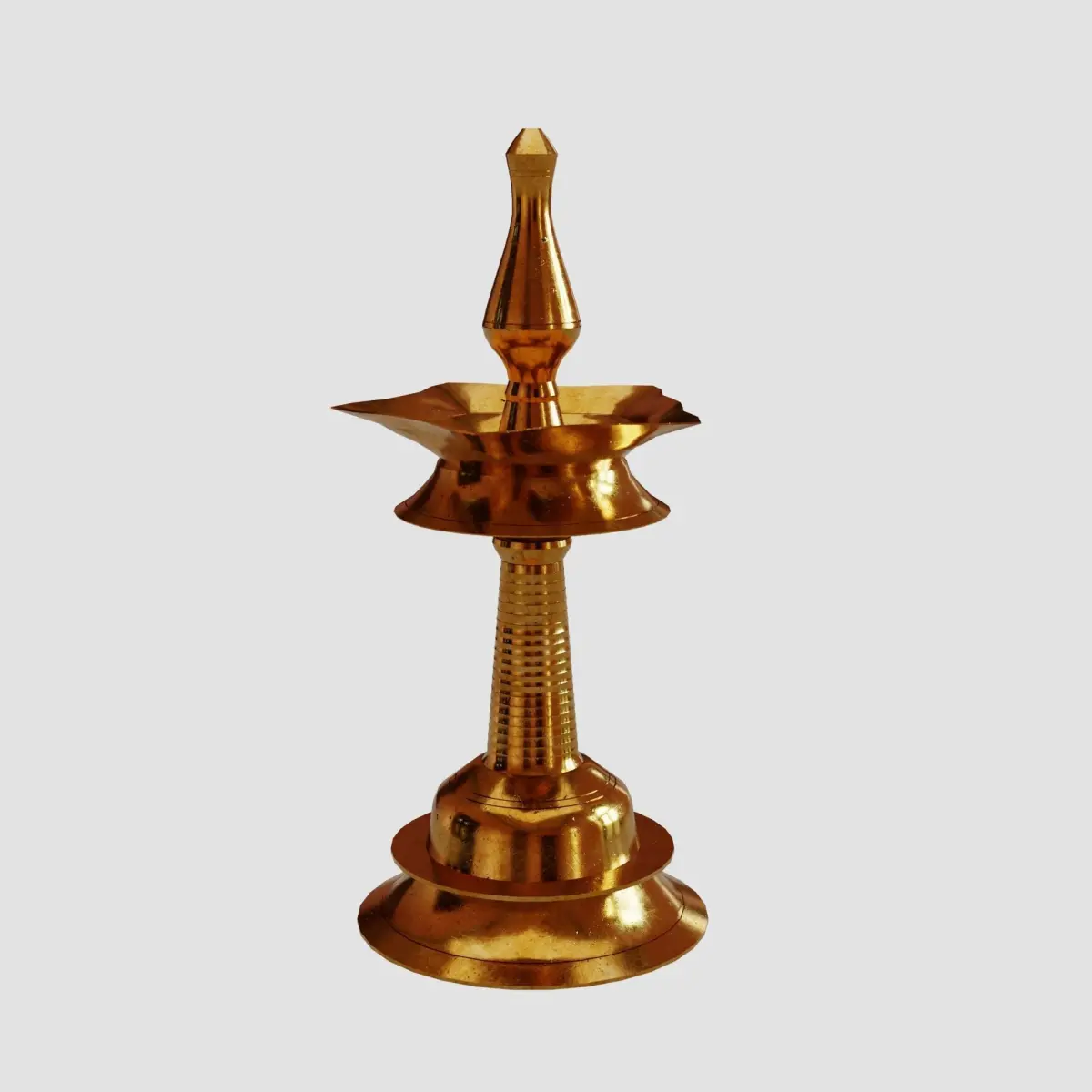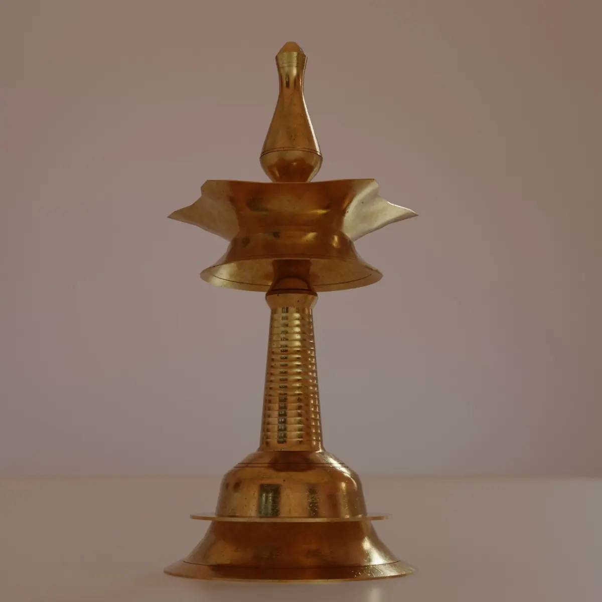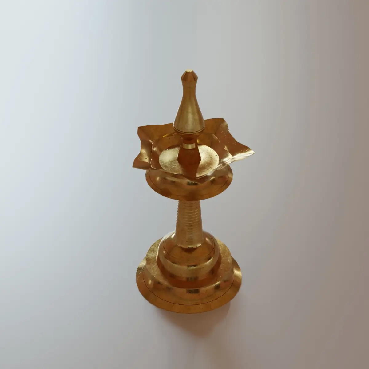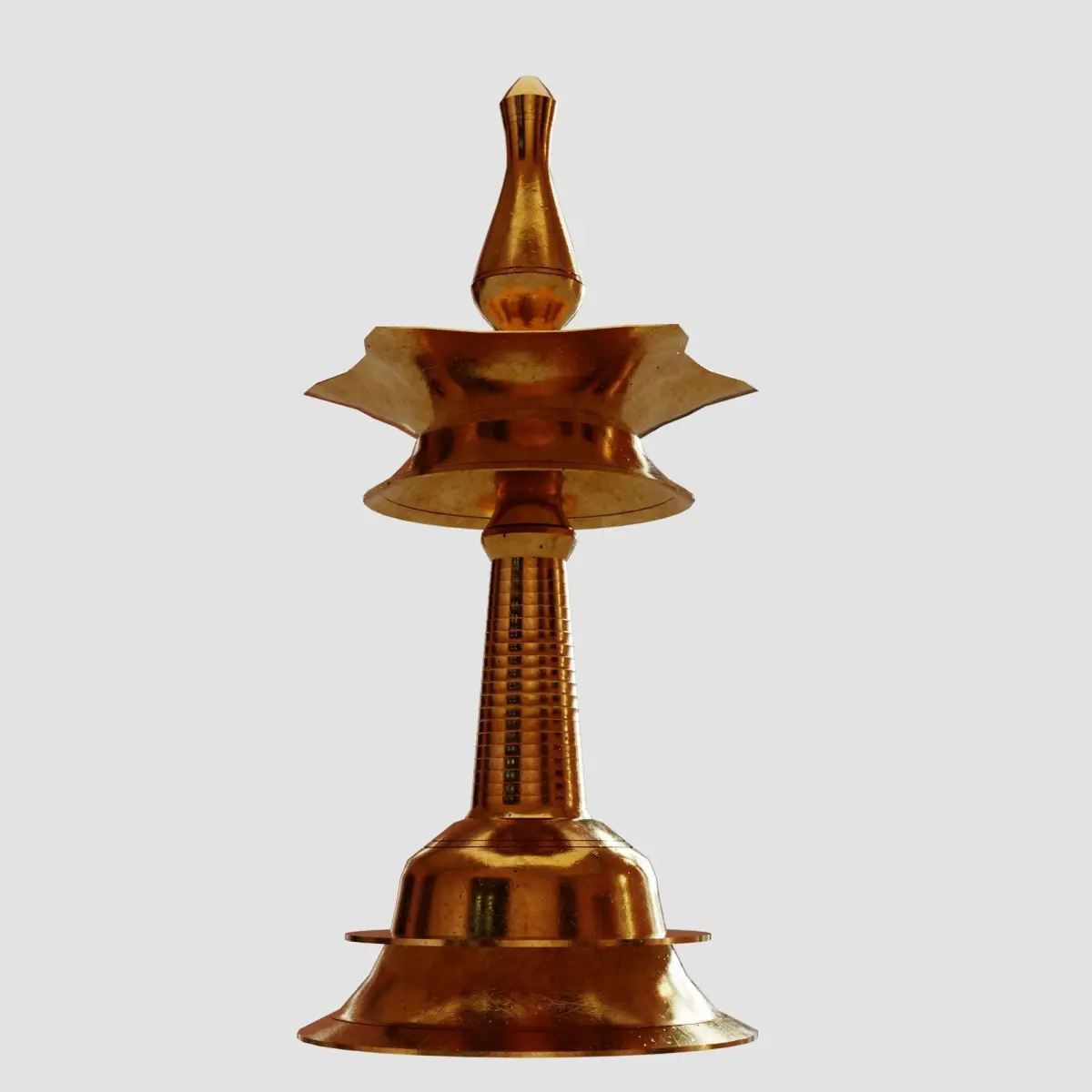 This is a Traditional Kerala style Nilavilakk(Floor Lamp) often found in religious environments in Kerala, India. I made a fairly high poly 3D Model of this Nilavilakk because I couldn't find a good model online.This is a Traditional type of lamp used in Kerala, India. It is very often associated with religion. People pray in the evening after lighting up such a lamp. A cotton thread is dipped in coconut oil in the top section of this lamp and lit. That is how it is used in this place called Kerala, which is in India. It is a part of the Kerala/Malayali culture. Especially in certain communities, such lamps are used for praying to God. It is also a very good piece of architectural decorative items. It is often made of Brass but some people prefer gold. It looks like a decorative item but is not just a decorative item, but also a part of the culture. I could not find a better model of this anywhere so that is why I made this so someone will find it useful. Specialities of this 3D Model include: