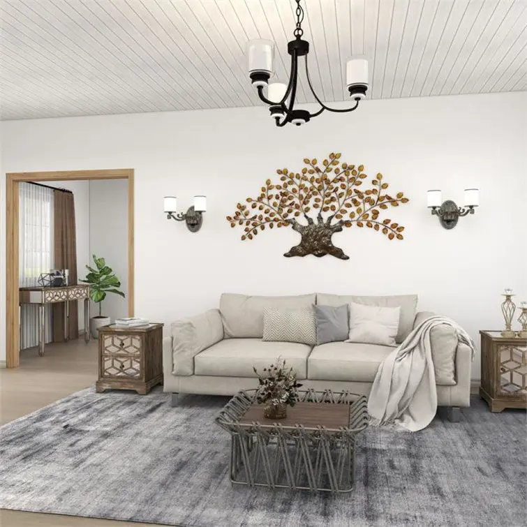 - Use this large decor to add a natural aesthetic to your living room, bedroom, or dining room. This item ships in 1 carton. Can be hung horizontally using the keyholes; nails and screws not included. A great versatile decor for indoor or outdoor display but are not rust or weather resistant. This item ships fully assembled in one piece. This is a single brown colored wall sculptures. Traditional style.