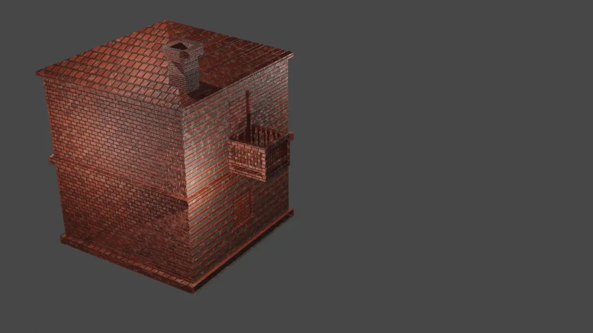 THE HOUSE IS A FULLY COVERED WITH RED STONE TEXTURE WITH:*ONE DOOR*WINDOWS