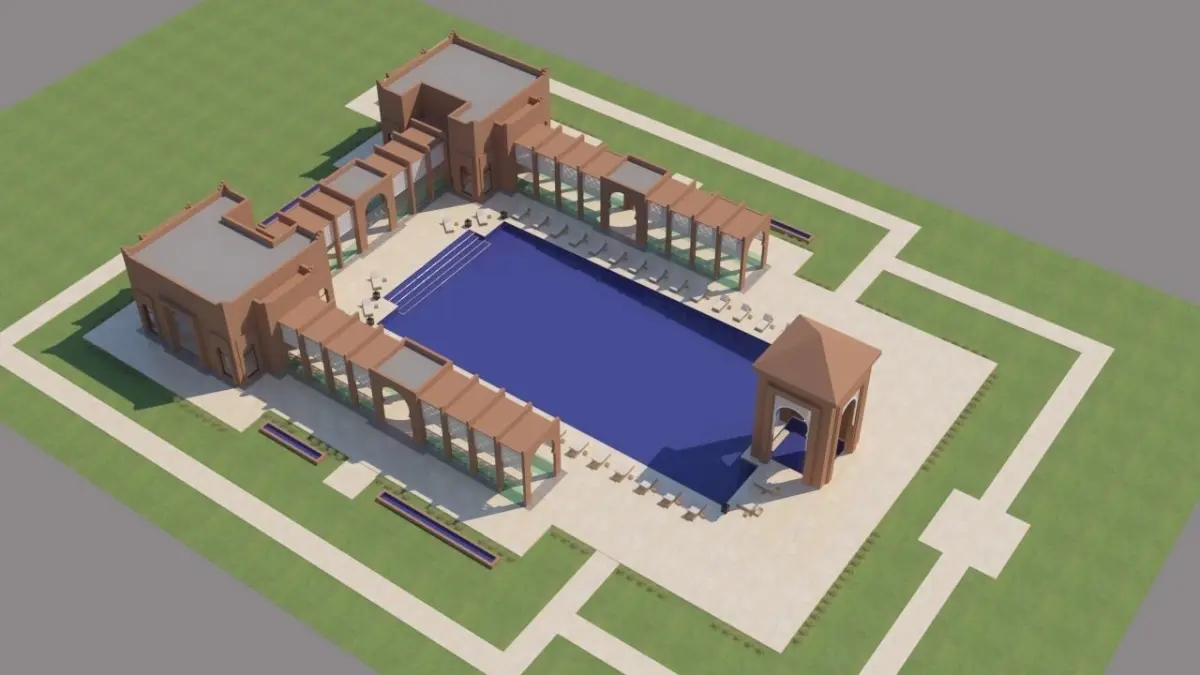 3D Traditional Moroccan Pool Marrakech tetouane