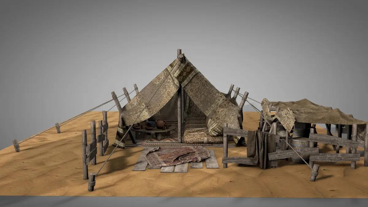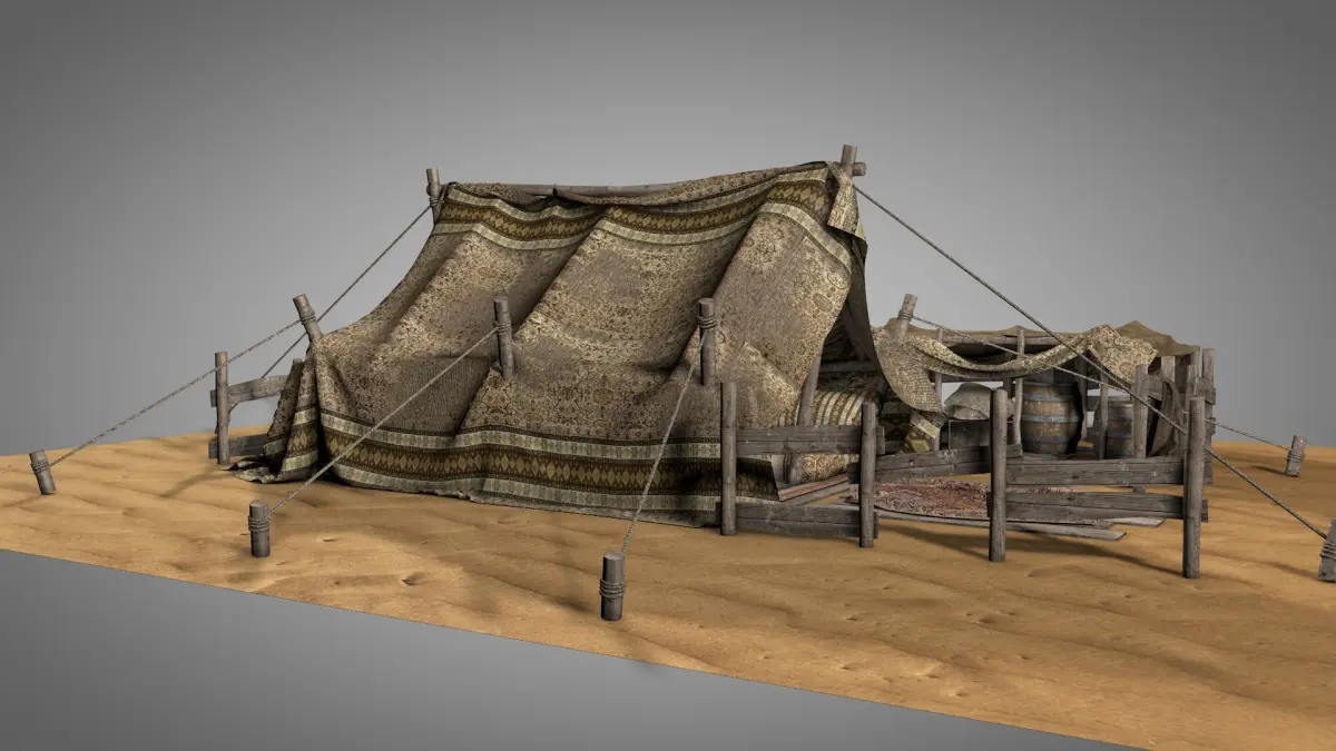 This preety nice looking high quality model is the first version of my nomad tents collection and very unique one (like some of my previous models) in 3D world that shows traditional details of a desert tent which had still been used by a desert people today.