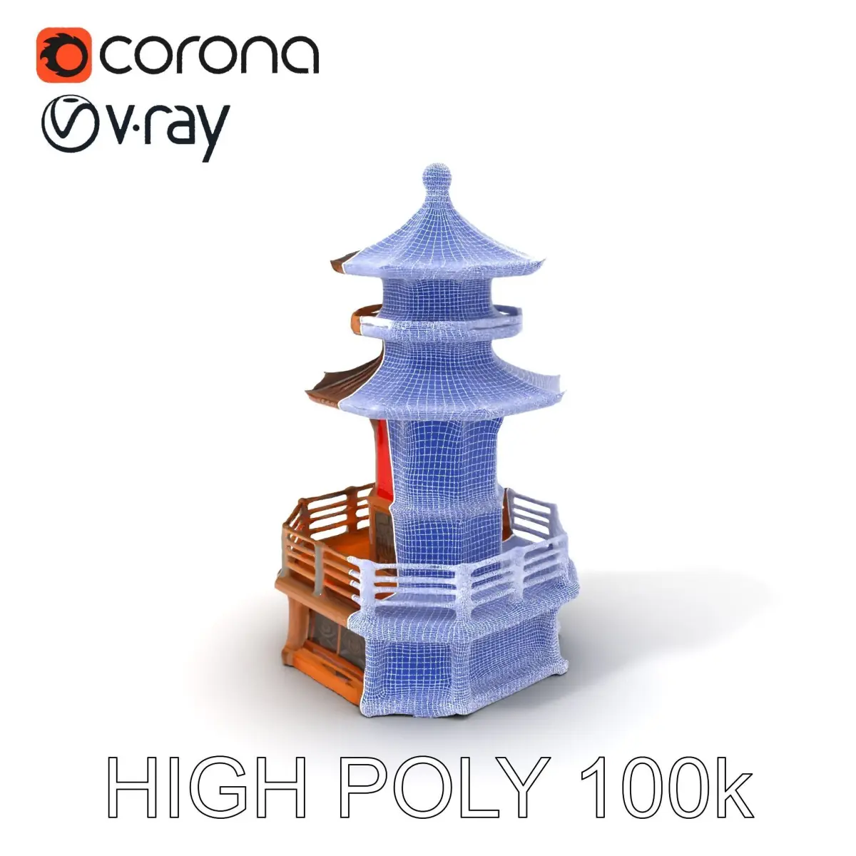 This Traditional Pagoda Model Pack offers three levels of detail for diverse applications: low-poly for mobile, middle-poly for environment integration, and high-poly for detailed rendering. It is ideal for use in architectural visualizations, historical recreations, or as a decorative element in virtual environments. The model includes PBR textures—Diffuse, NormalMap, and reflection/roughness/metallic—suited for modern rendering engines. All textures are 4096*4096 and the model is unwrapped with no overlapping UVs. The first image is the reference used for creating the 3D model. It is important to carefully evaluate the quality of the model by examining the preview images that display the topology and polygonal mesh. These previews (WIRE and WEB 3D Preview) clearly demonstrate how accurately the model matches the original reference and how well the geometry has been executed. If you like this model, please leave a comment and like.