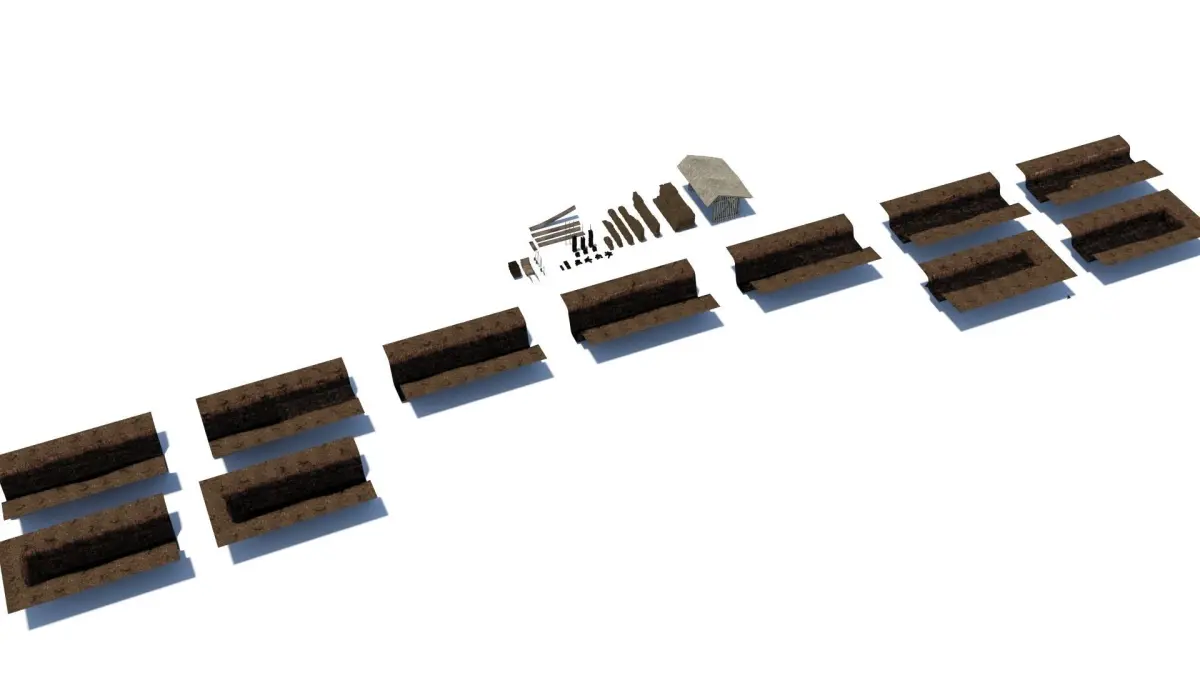 - Fully mapped and textured with 2k PBR material (trenches and shed with 4k).