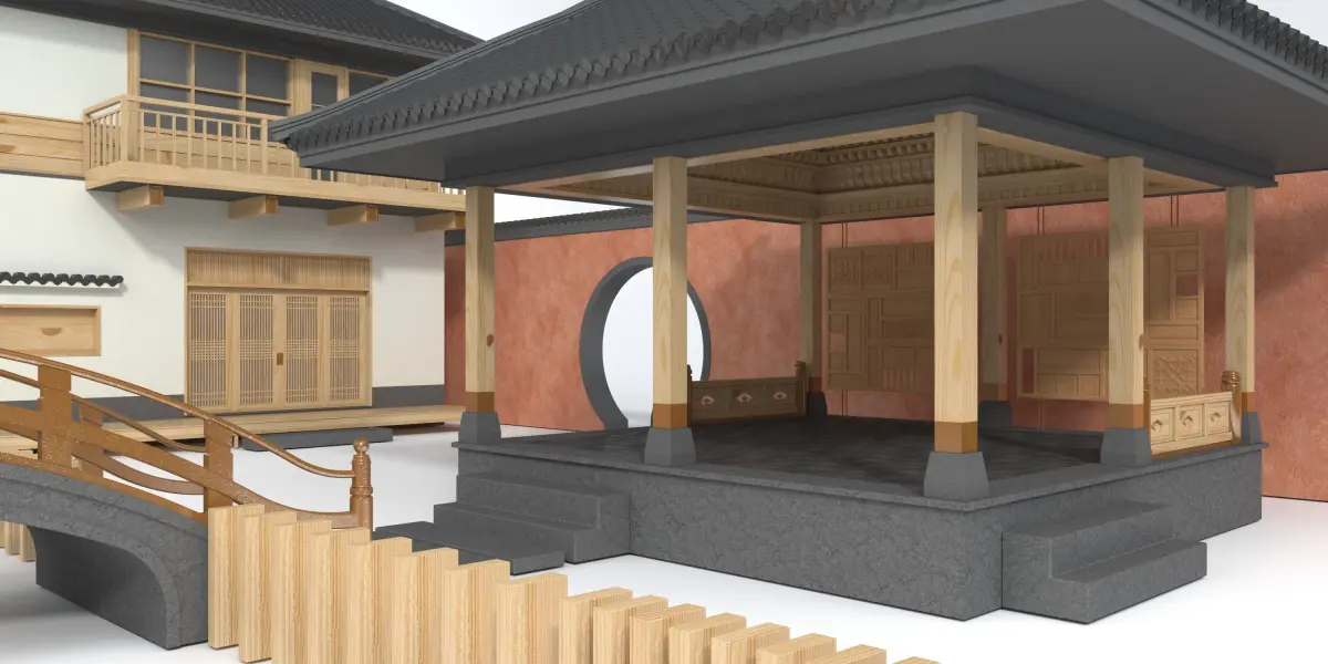 - This is a project to recreate an old garden house space. The main design style is inspired by ancient Asian architecture.