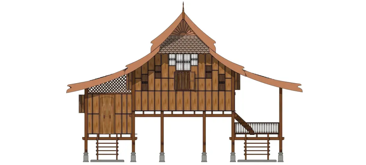 rumah terengganu 3d, malay traditional house, malaysia vernacular architecture, southeast asian wooden house, cultural heritage malaysia