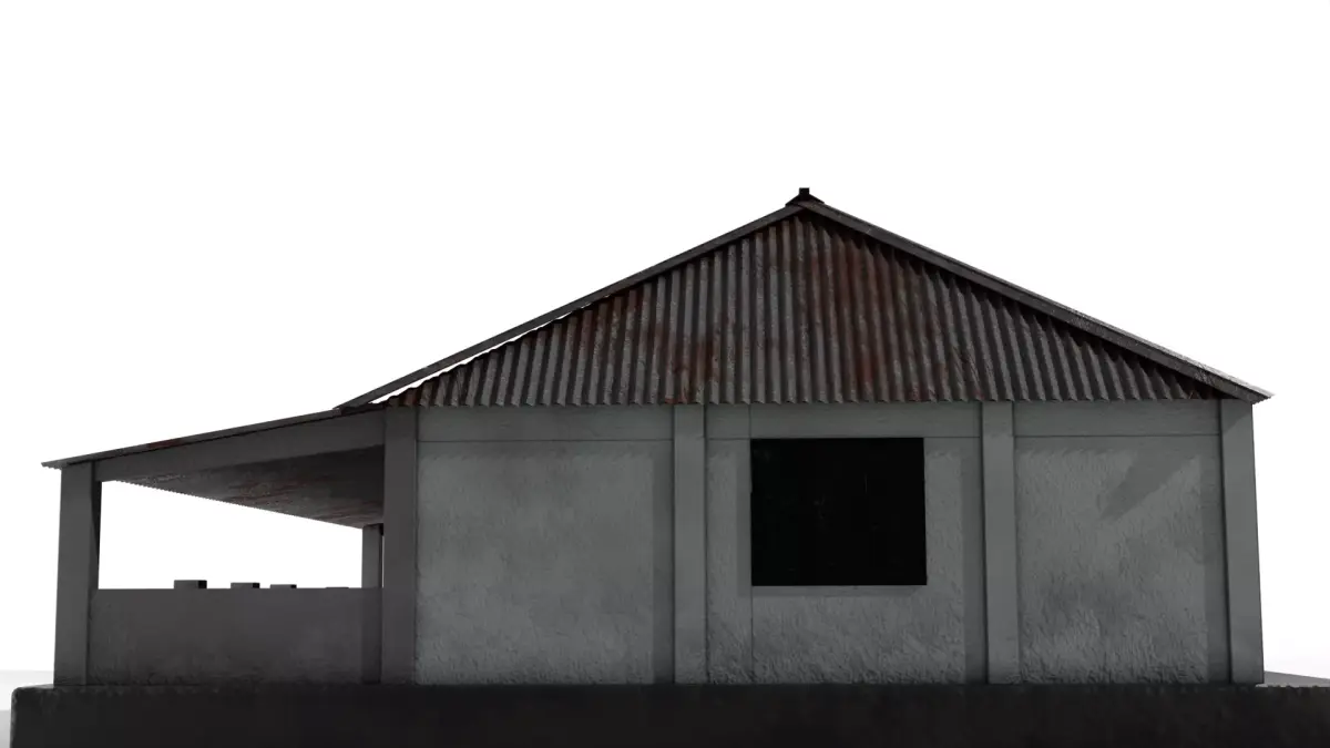 - Weathered PBR Textures: Features realistic rust on the corrugated metal roof and aged concrete textures.