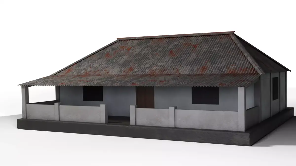 This Traditional Rural Village Mosque is a high-quality 3D architectural model representing the modest, functional religious structures common across South Asia (Bangladesh, India, Pakistan) and Southeast Asia. Designed for cultural environment dressing, historical reconstructions, and real-time simulations, this model features the iconic weathered corrugated metal (tin) hip roof and concrete veranda typical of rural community mosques.