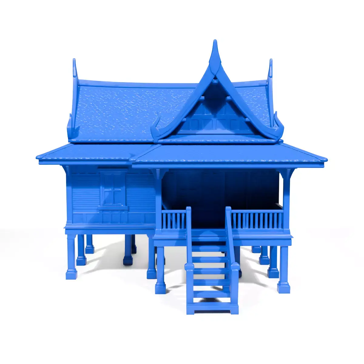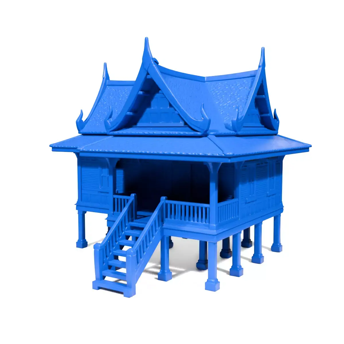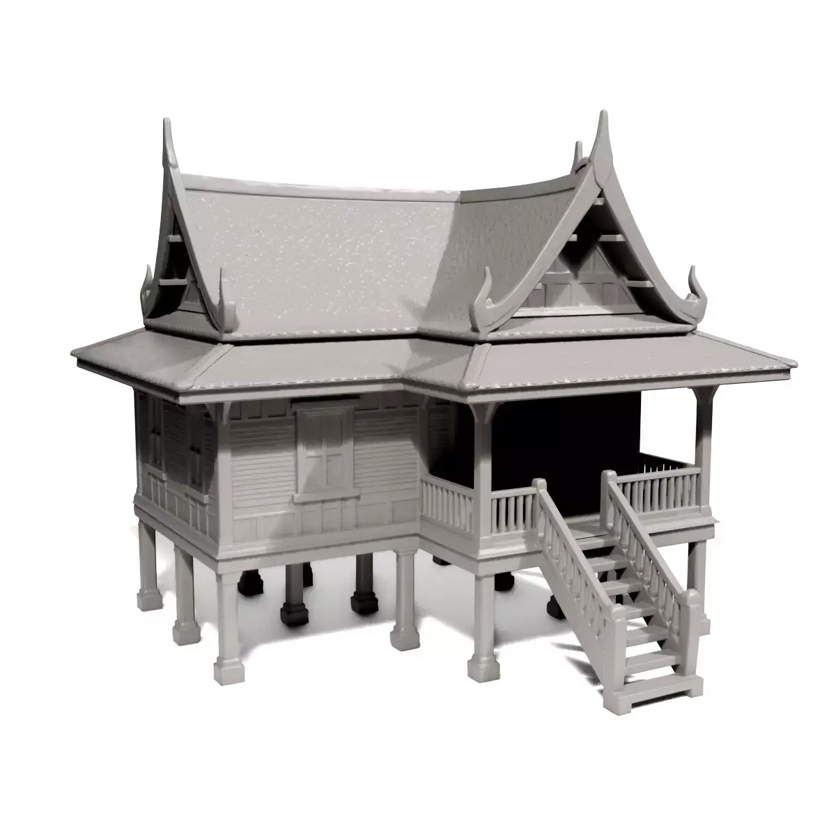 This model of a Traditional Thai House captures the unique architectural details of classic Thai structures, highlighting its artistic gables and elevated stilts typical in southeast Asian architecture.