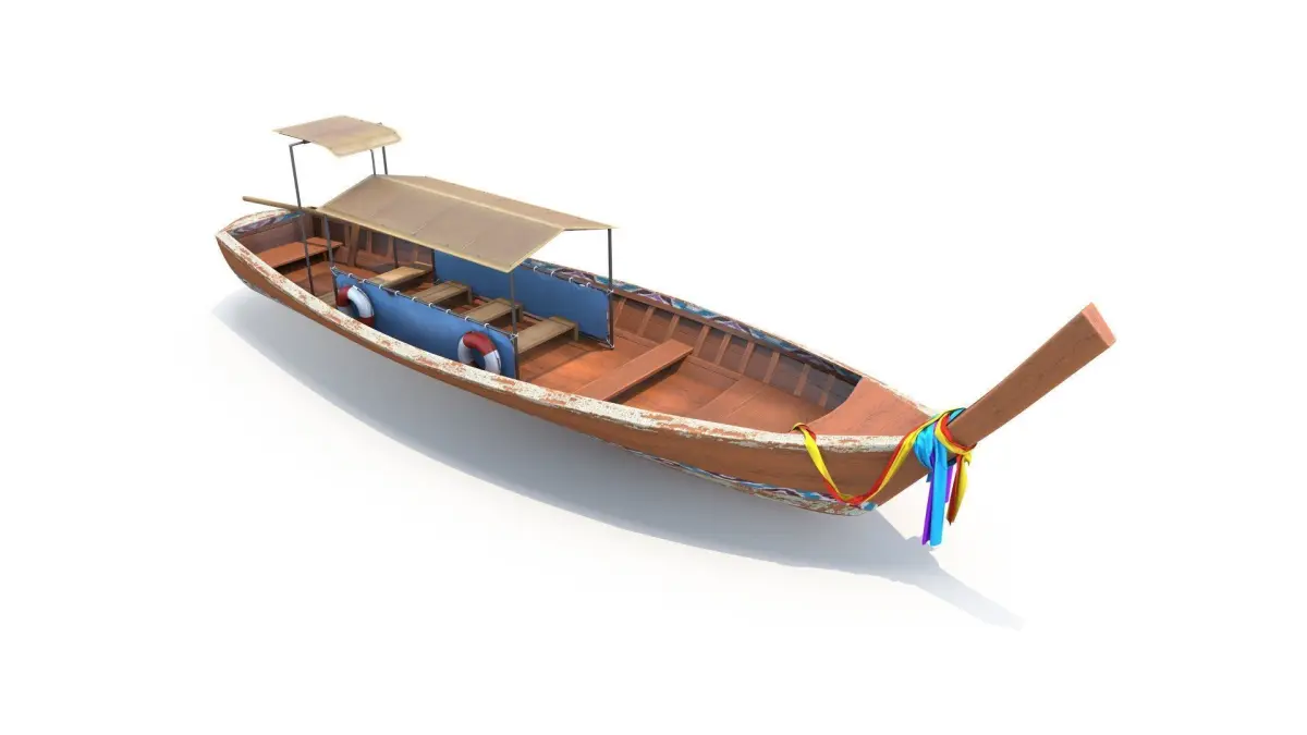 Traditional Thai Longtail Boat is a highly detailed, photo-realistic 3D model crafted for visual fidelity in close-up and wide-angle renders. This authentic boat model is perfect for use in game environments, cinematics, VR/AR applications, and tropical scene visualizations.