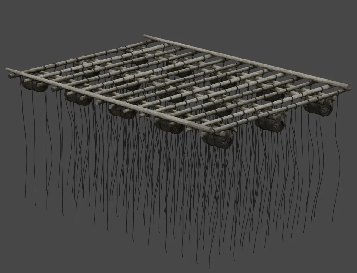Traditional Aquaculture Raft :Vertices: 225,652 Faces: 222,894 Triangles 445,276