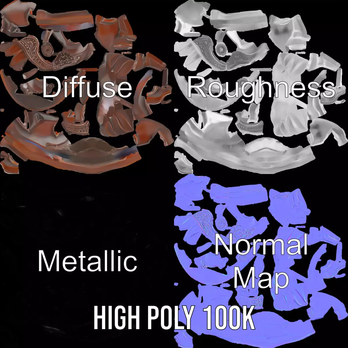 The Traditional Wooden Mask model pack features a beautifully crafted mask with intricate tribal details. Perfect for cultural exhibits, themed environments, and educational projects, this model pack provides realistic and artistic aesthetics. Each model has 3 levels of detail: low-poly (1000 triangles for mobile), middle-poly (10,000 triangles for environment), and high-poly (100,000 triangles), which allows for the use of this model in production rendering (such as 3ds Max, Maya, Cinema4D, Blender, Vray/Corona/Cycles and all other), game engines (Unity and Unreal compatible), and interactive presentations, providing a choice of detail based on the LOD System principle. The model's textures are PBR, Diffuse, NormalMap, and reflection/roughness/metallic, which are suitable for any modern rendering engine. All models accurately unwrapped and have no overlapping UV. All textures are 4096*4096 in size.
