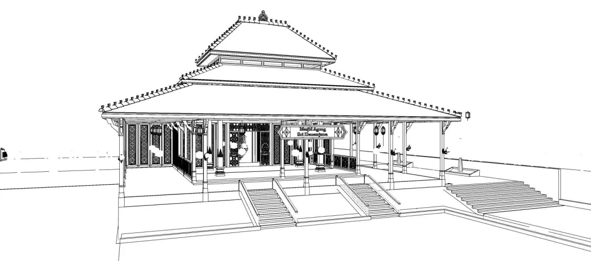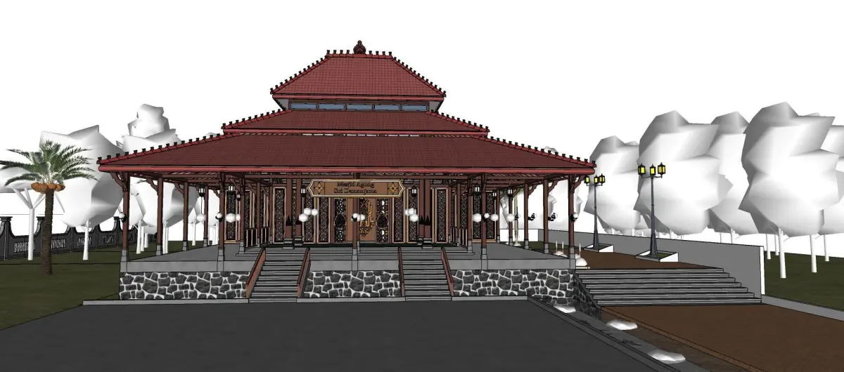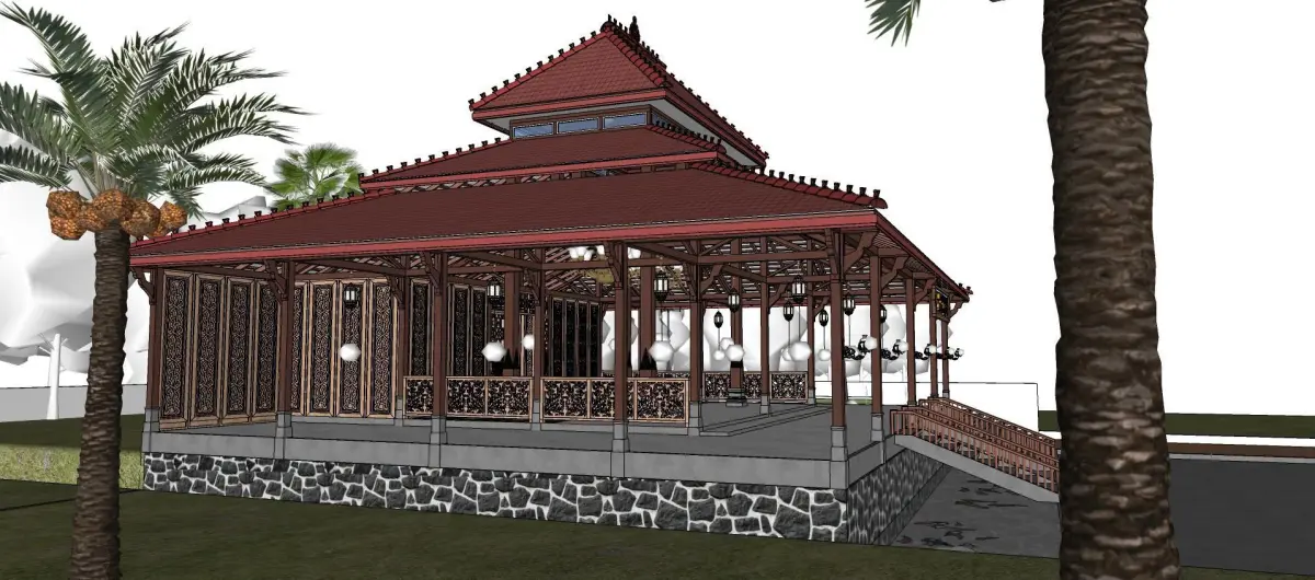 Traditional wooden mosque prayer room 3D model
