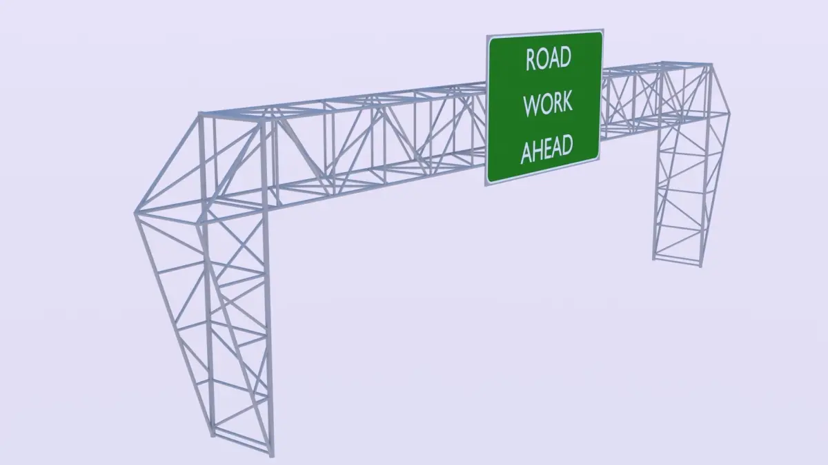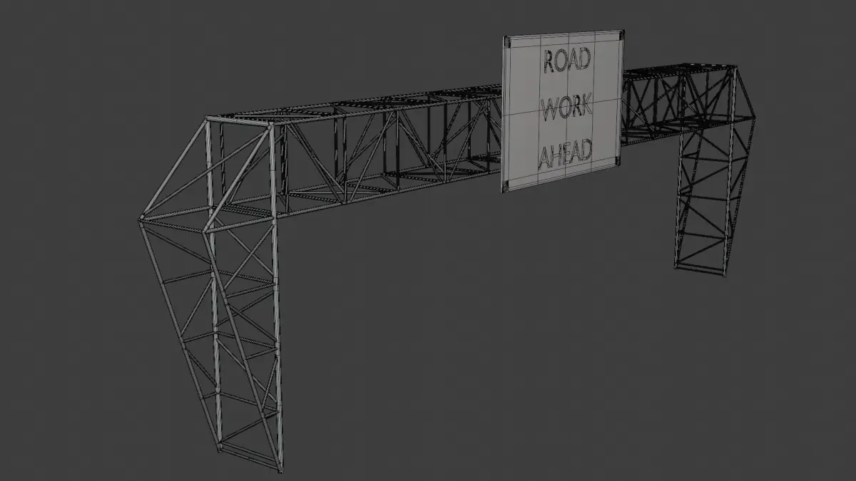These are 3D models of highway sign, motel billboard and pedestrian bridge.