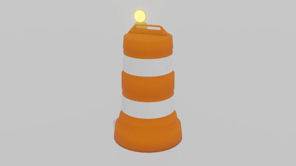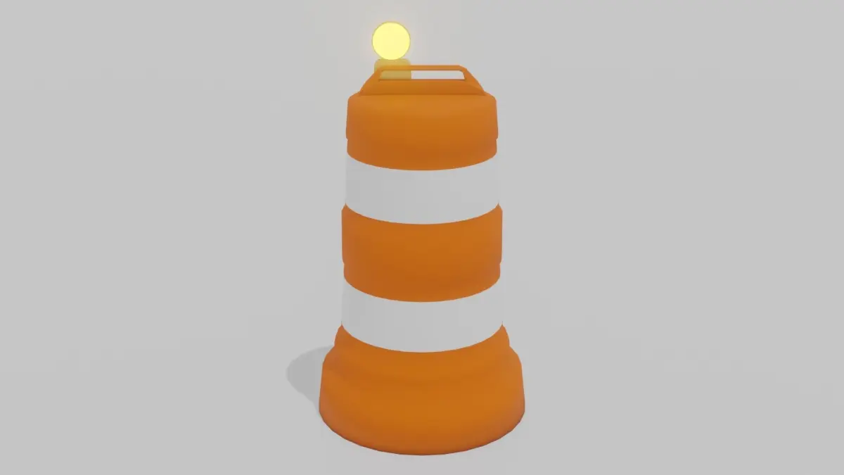 Traffic barrel with light used for road construction and to detour road vehicles from construction sites.