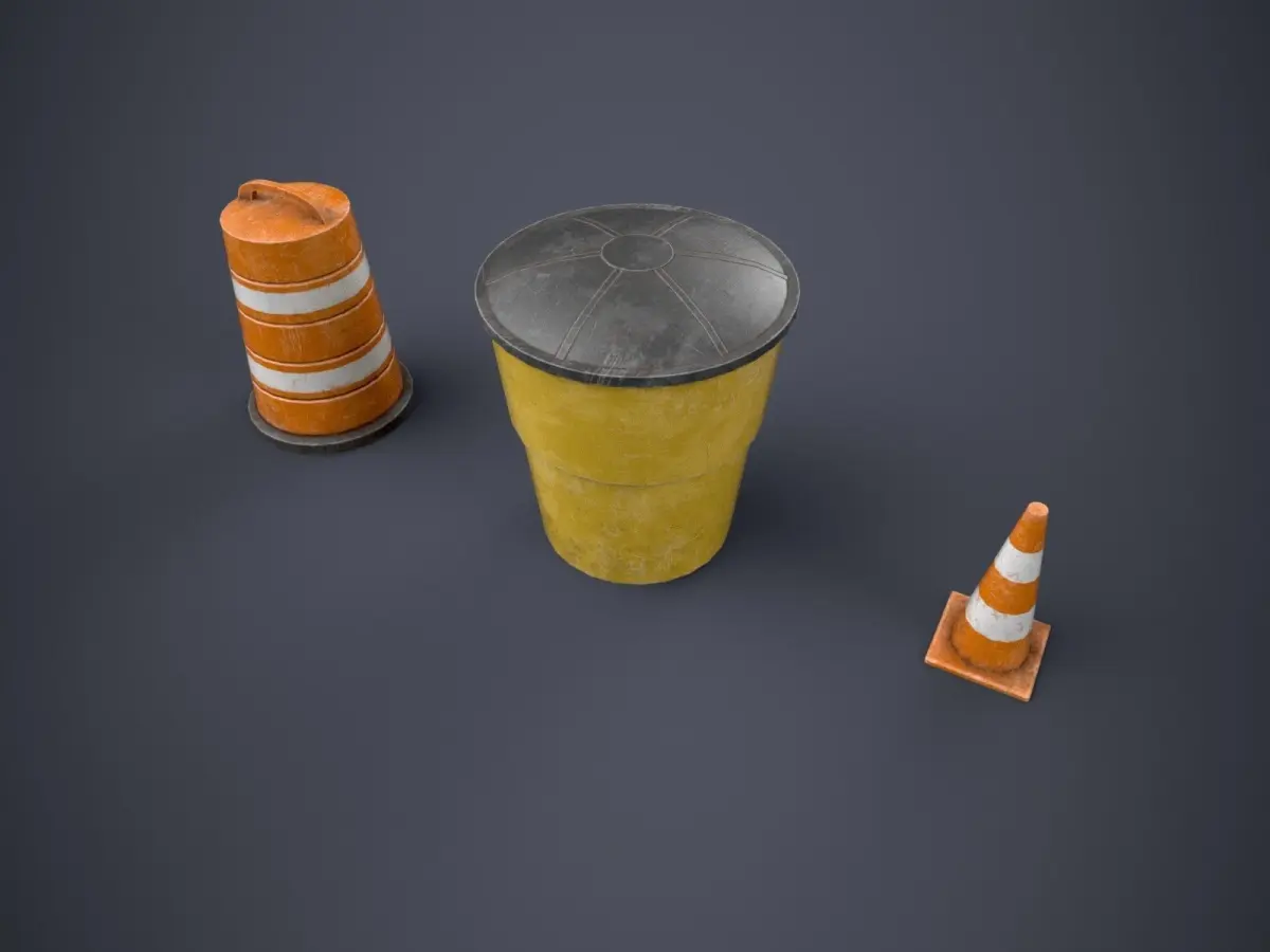 Pack of Traffic Barrels and Cone for your game or for use in other purposes