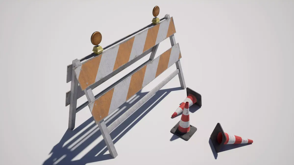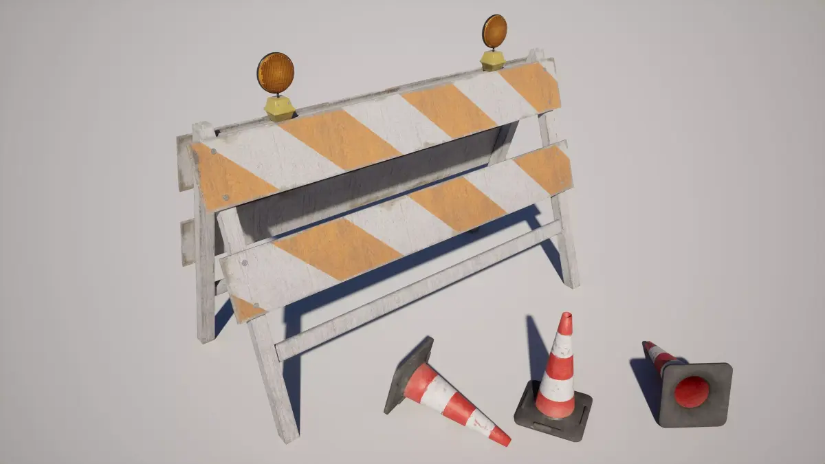 Detailed models of a traffic barrier and a cone